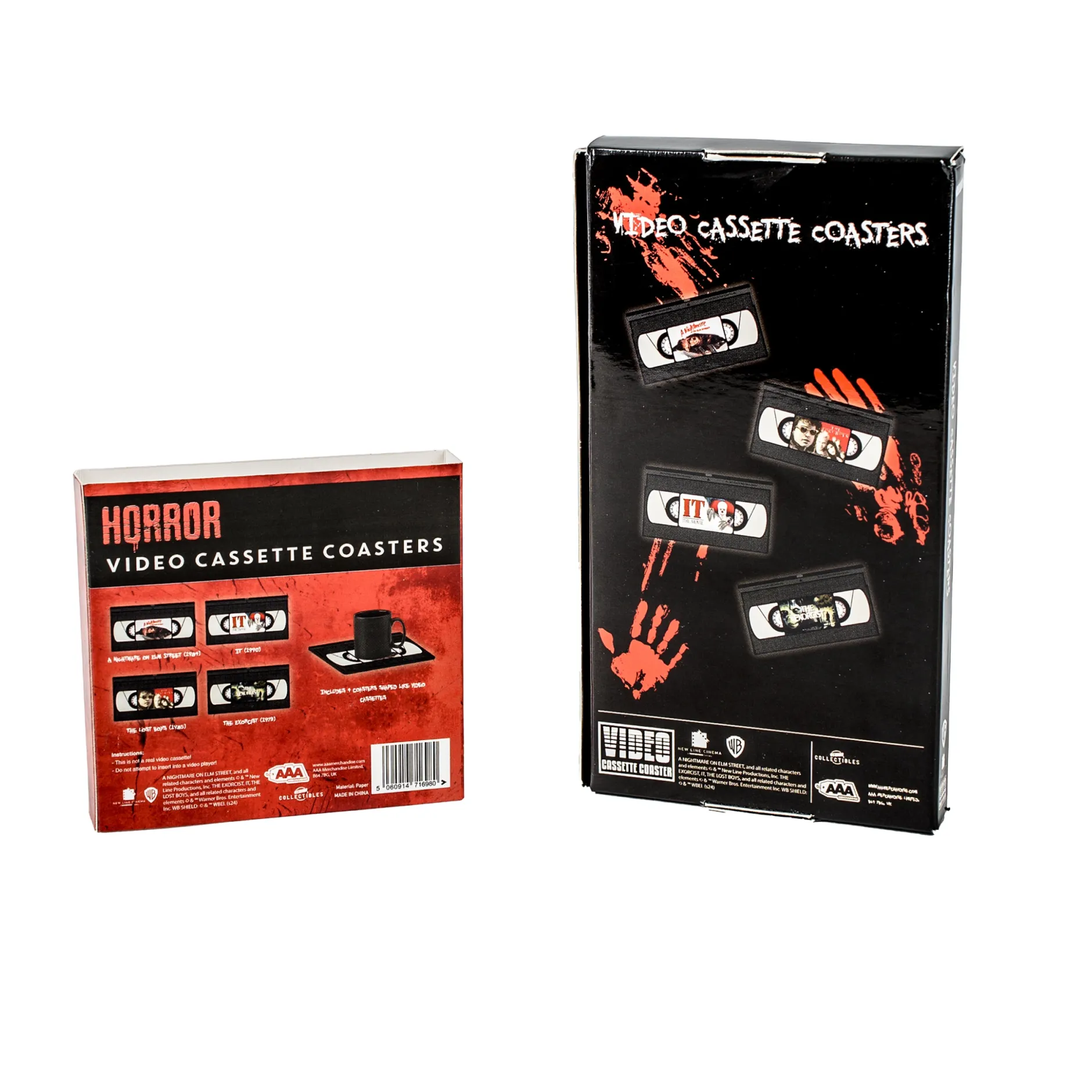 - Set aus 4 Korkuntersetzern im Stil von VHS Klassikern des Horror-Genres