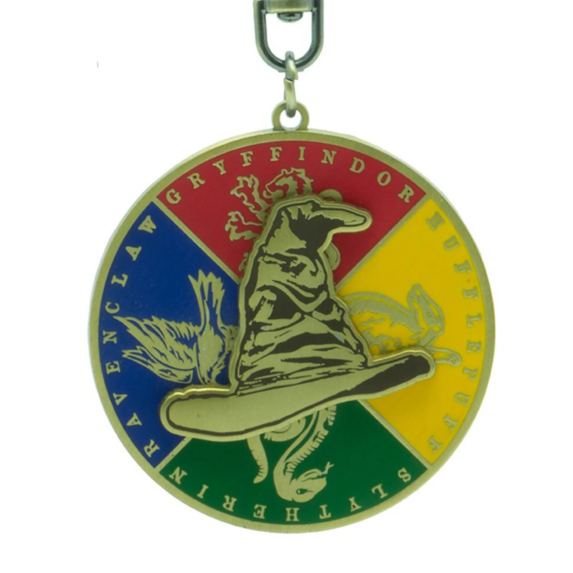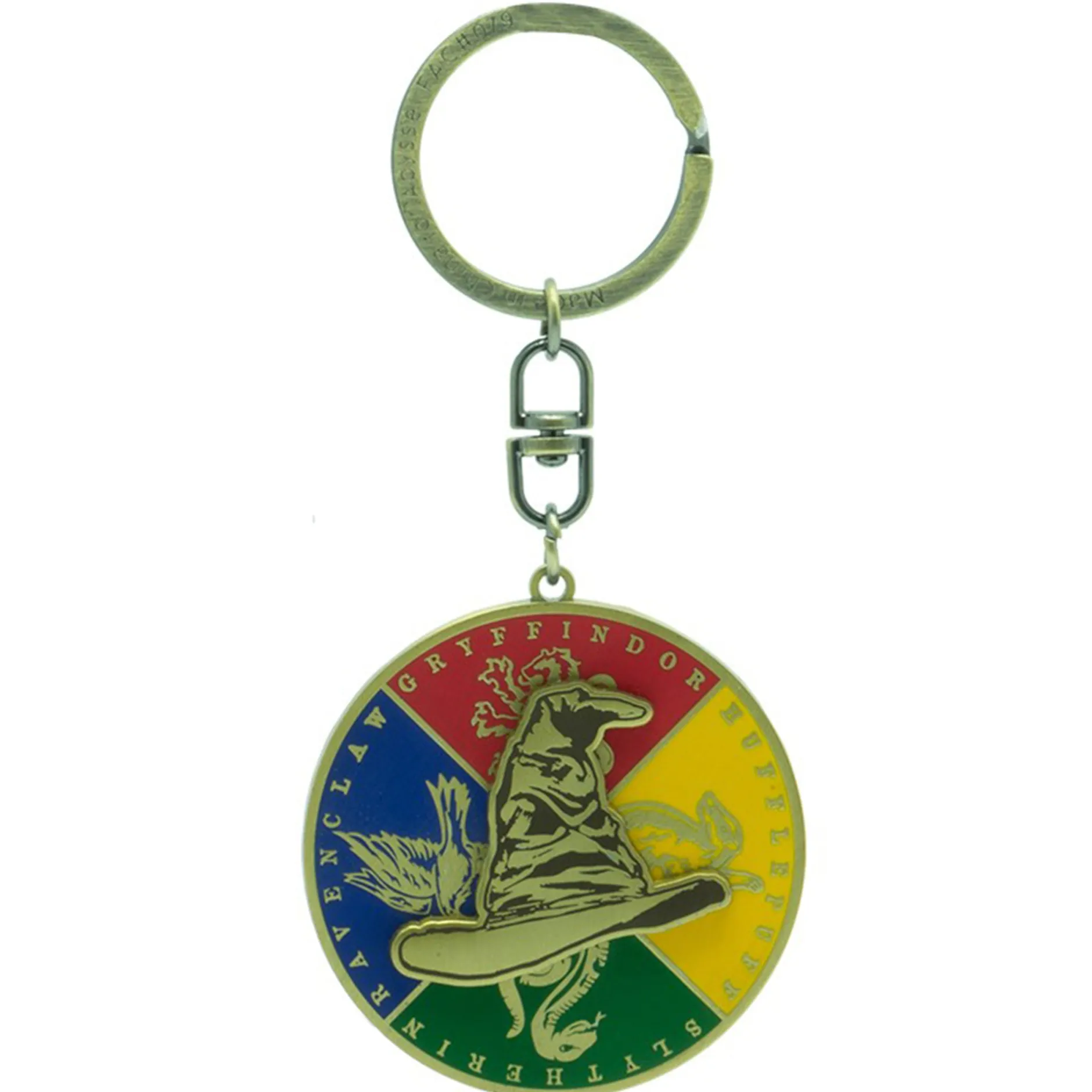 Mit dem beweglichen Schlüsselanhänger „Der Sprechende Hut“ von Harry Potter kannst du ein winziges bisschen von dieser Magie von nun ab überall mit hinnehmen. Der drehbare Sprechende Hut in der Mitte ist von den vier Farben, Tieren und Namen der Häuser umgeben. So kannst du zum Beispiel den magischen Hut offenbaren lassen, in welchem Haus du wirklich bist und ob deine Freunde eher Slytherins, Hufflepuffs, Gryffindors oder vielleicht doch Ravenclaws sind.