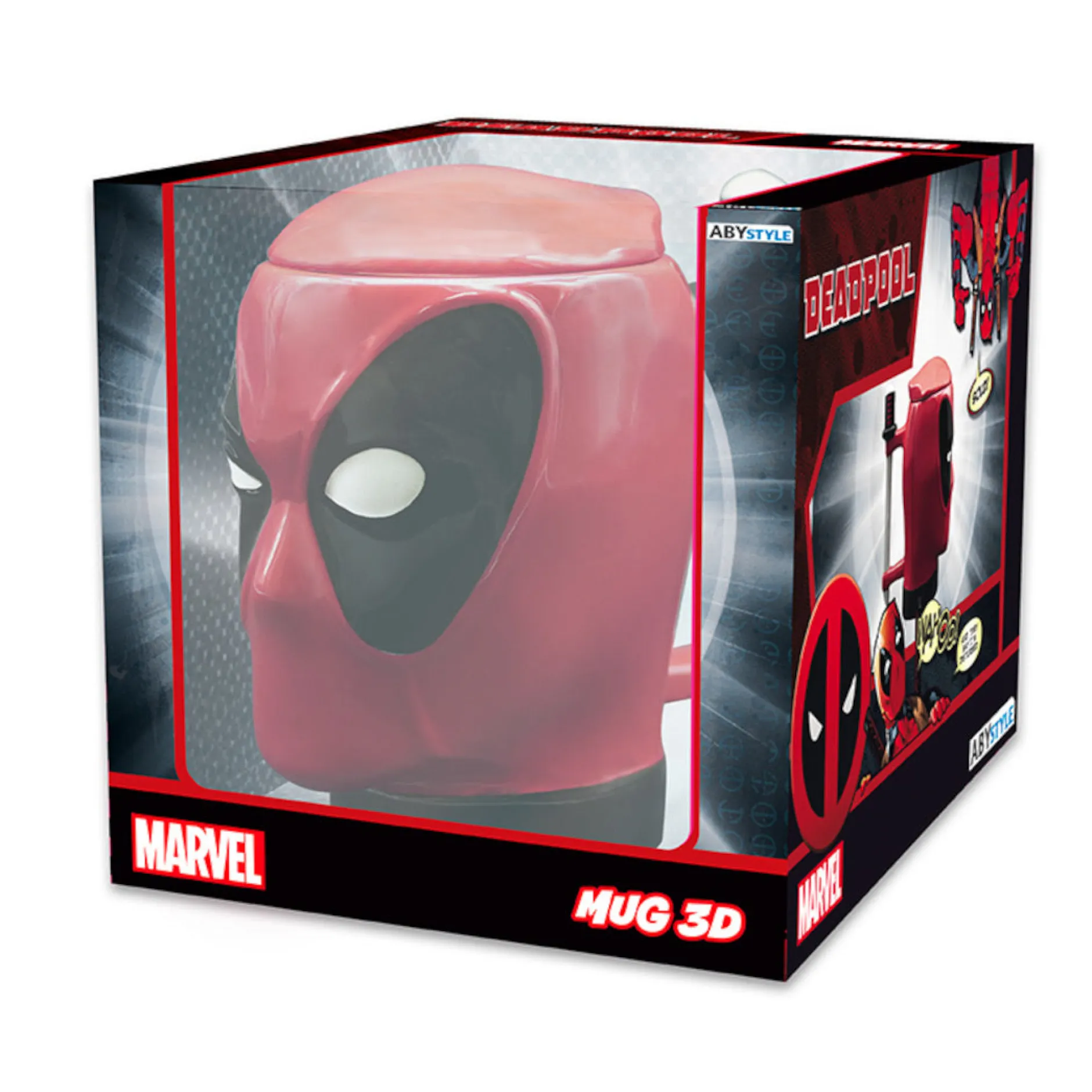 - Deadpools Kopf als 3D-Tasse mit Deckel und einem Katana als Griff
