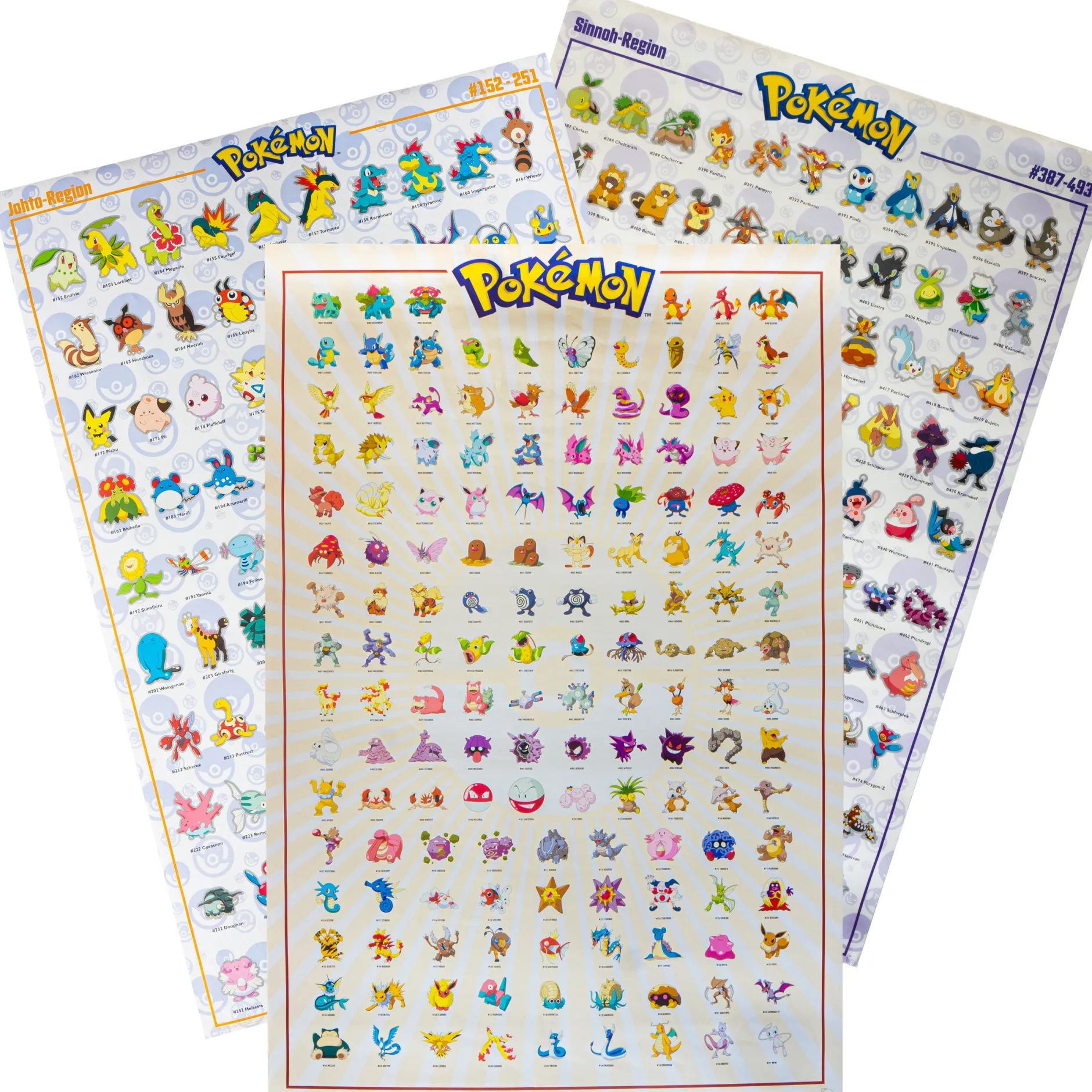 - Poster mit allen Pokémon verschiedender Regionen