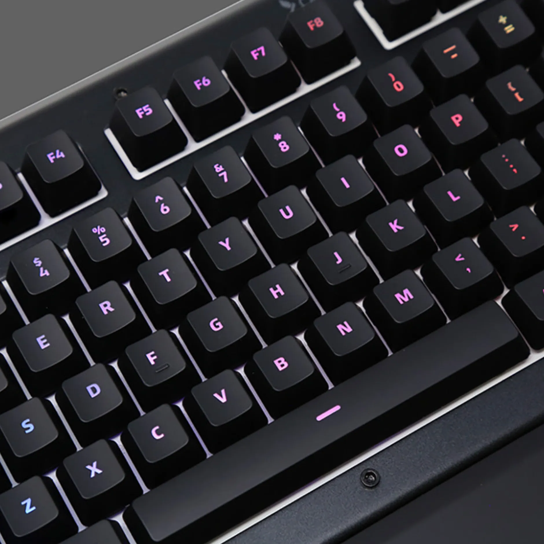 Die durchsichtigen „Modern Font“ RGB-Tastenkappen ermöglichen Dir freie Sicht auf die Beleuchtung der 5Q oder X50Q, verfügen zusätzlich aber noch über eine Laserbeschriftung. Diese Variante ist in verschiedenen Tastaturlayouts erhältlich!