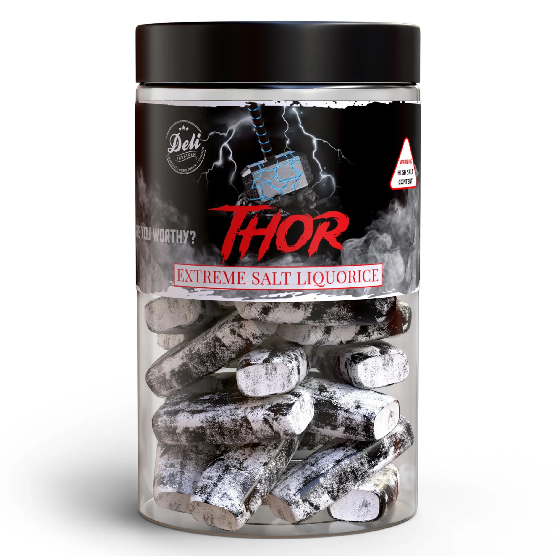 Thor, der hammerschwingende Donnergott, ist neben seinem Vater Odin der mächtigste und furchteinflößendste unter den skandinavischen Gottheiten. Doch selbst er würde davor zurückschrecken, das Extreme Salzlakritz aus Schweden zu probieren!