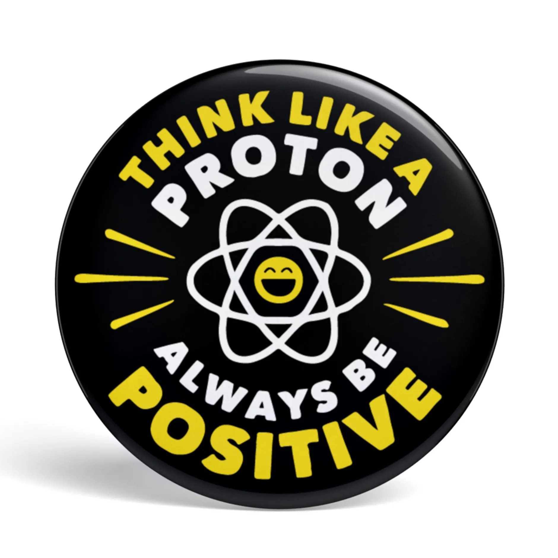 Stattdessen sollten wir uns das bescheidene Proton zum Vorbild nehmen, wie der Geek Button Think Like a Proton vorschlägt: Denn ein Proton ist von Natur aus positiv (geladen) – dementsprechend kann es gar keine negative Energie ausstrahlen (im übertragenen Sinne :D). Zugegebenermaßen klappt es nicht immer, positiv zu bleiben. Aber jeder Versuch bringt uns ein Stück näher zum idealen Protonen-Zustand. 🙂