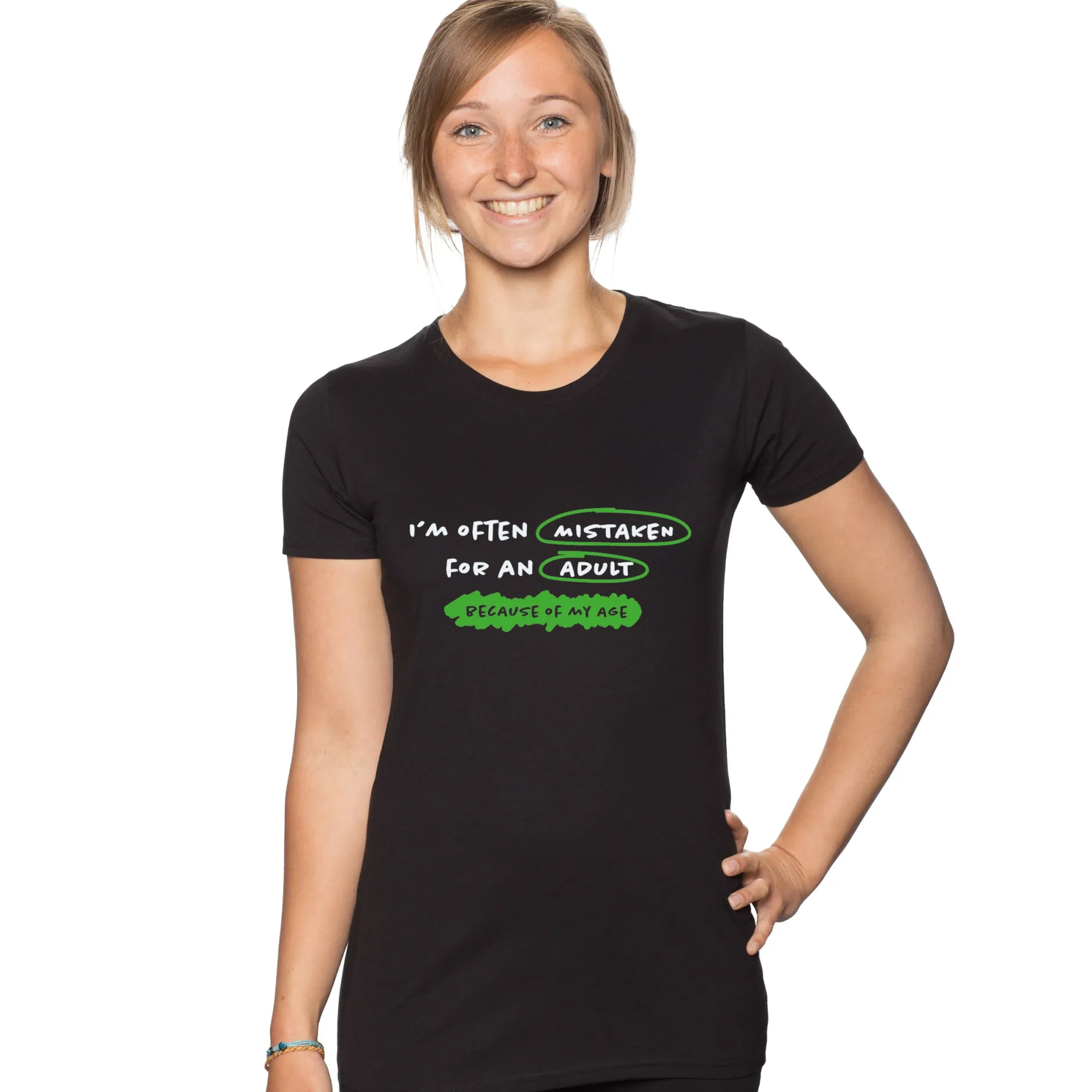 Zahlen sind uns Nerds ja bekanntlich wichtig. Die Zahl 18 beispielsweise bedeutet in Deutschland, dass wir sogenannte “Erwachsene” sind. Allerdings braucht es zu diesem Level-Up keinerlei weitere Fähigkeiten oder Achievements – man rutscht einfach hinein, ob man will oder nicht. Mit diesem “Mistaken for an Adult” T-Shirt zeigst du allen, dass du dich diesem Zwang gerne widersetzen möchtest – egal was die Zahl auf dem Geburtstagskuchen sagt!