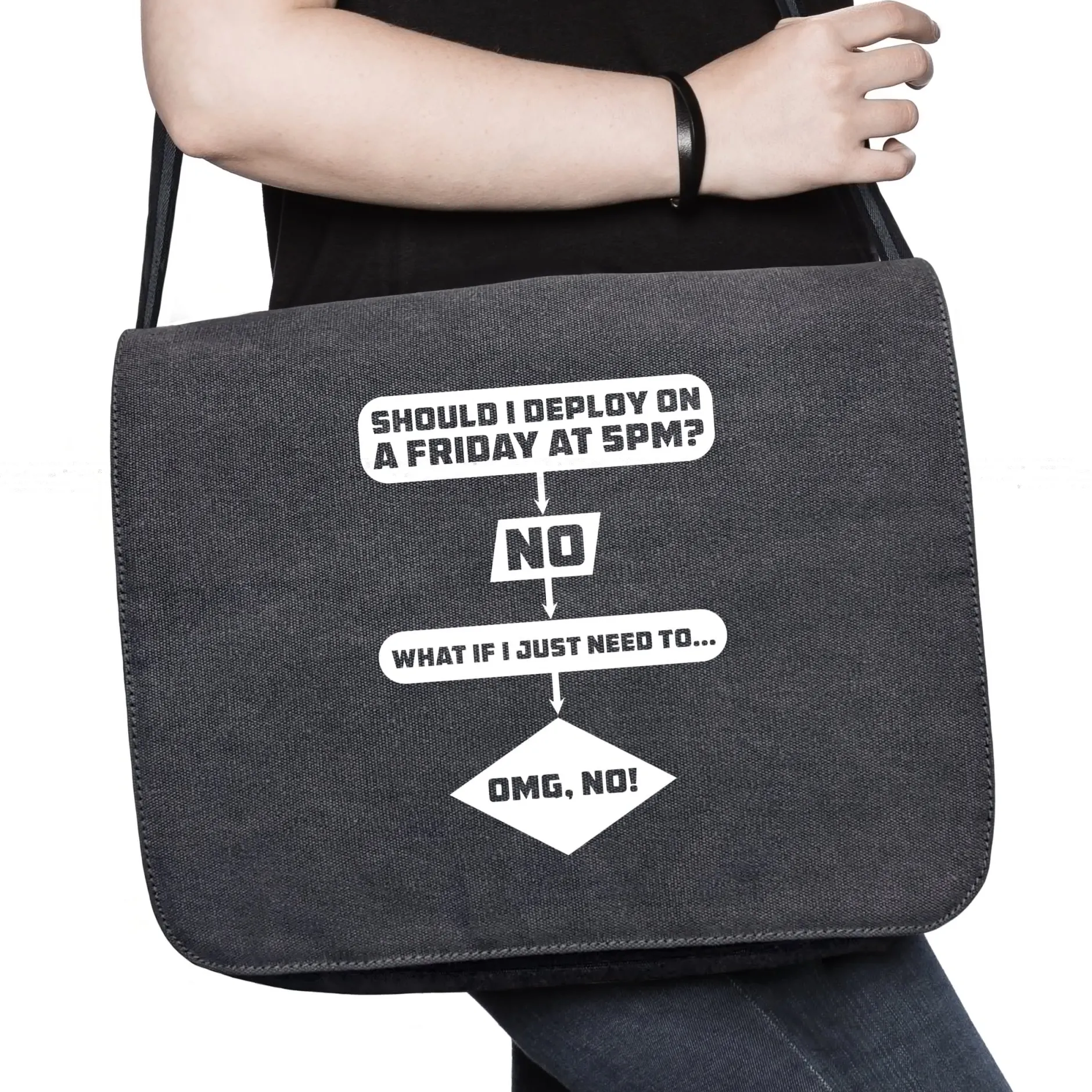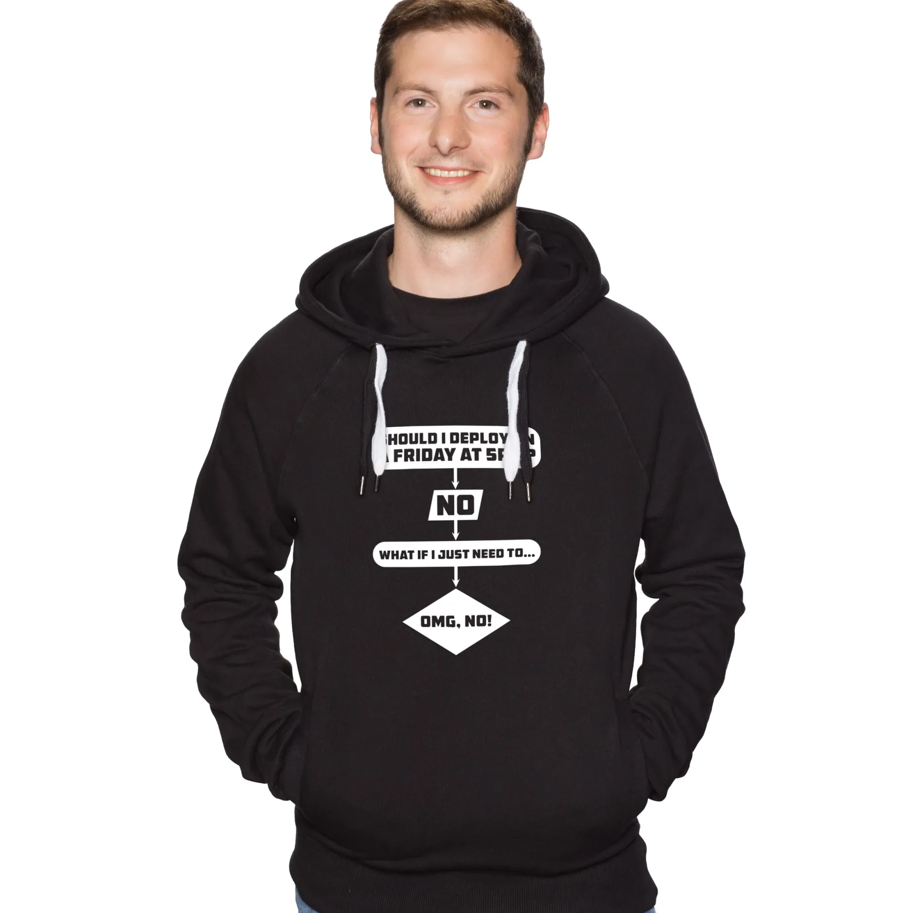 Es gibt ein paar ungeschriebene Gesetze in der Informatik, an die man sich halten muss. Und wenn man es mal nicht tun sollte, wird man diesen Fehler garantiert nicht wiederholen. Das Paradebespiel dafür ist auf dem „Deploy on Friday“-Shirt zu sehen. Denn es gibt nichts Gefährlicheres, als an einem Freitag gegen Feierabend ein Update aufzuspielen. Du kannst Deinen Code noch so oft überprüft haben und noch so talentiert sein: Dieses Risiko willst Du nicht eingehen.