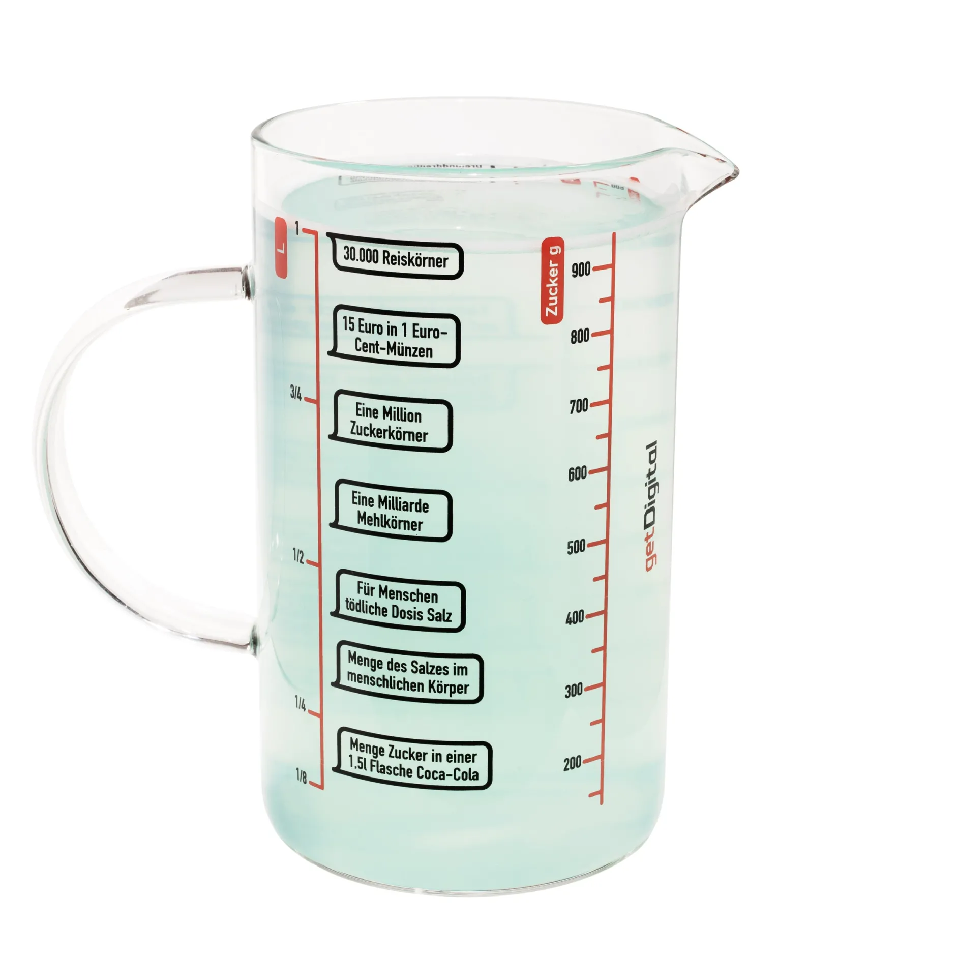 - Messbecher, auf dem 14 verschiedene nerdige Fun Facts markiert sind