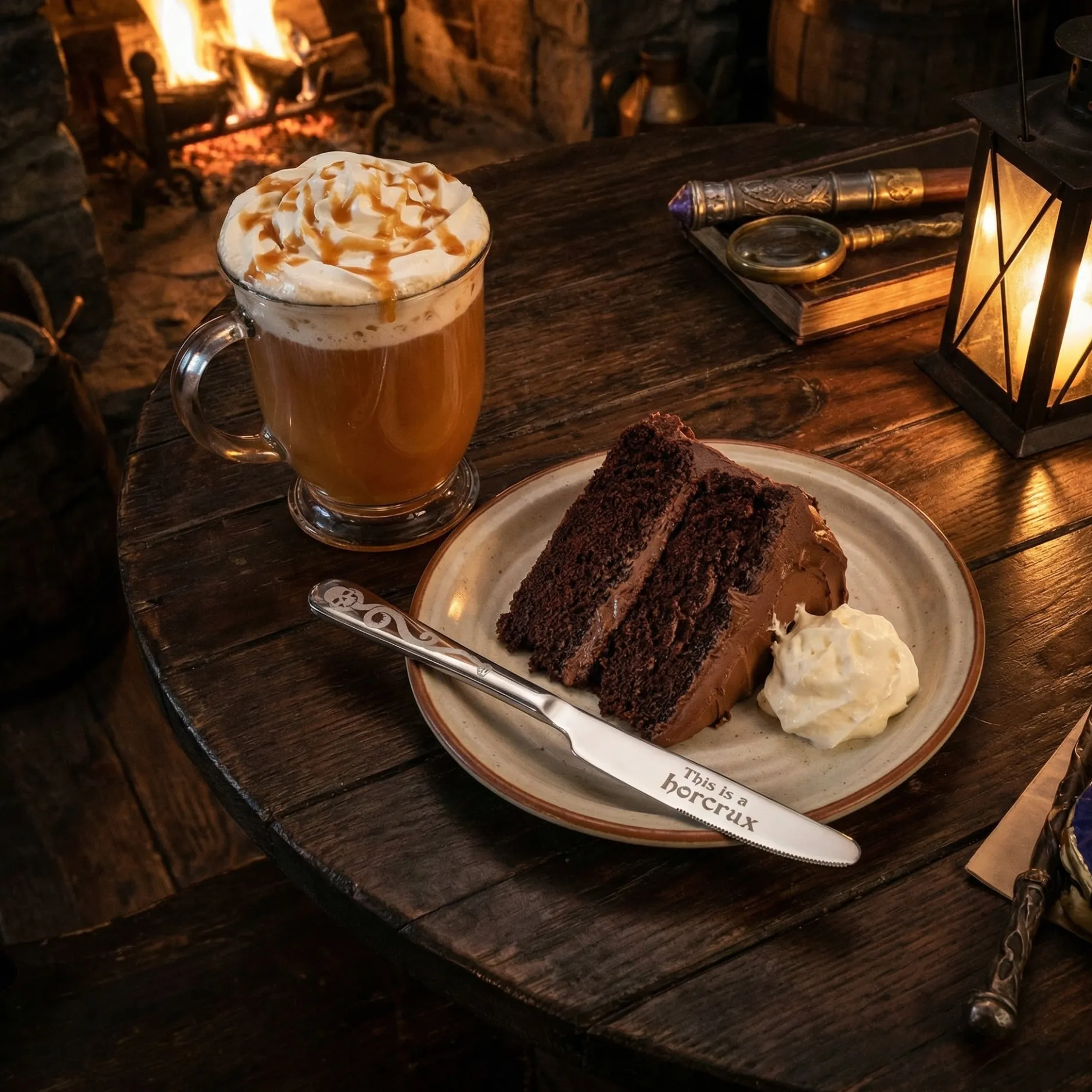 Manche Dinge sollte man lieber nicht aus der Hand geben – bei diesem Tischmesser ist das sogar wörtlich zu nehmen. Denn das Horcrux Tischmesser bringt eine düstere Portion Stil an jede Tafel und wirkt fast so, als hätte es einst einem gewissen dunklen Magier gehört. Die Gravur „This is a Horcrux“ sorgt dabei ganz sicher für Gesprächsstoff – und vielleicht auch ein wenig Respekt beim Kuchenbuffet.
