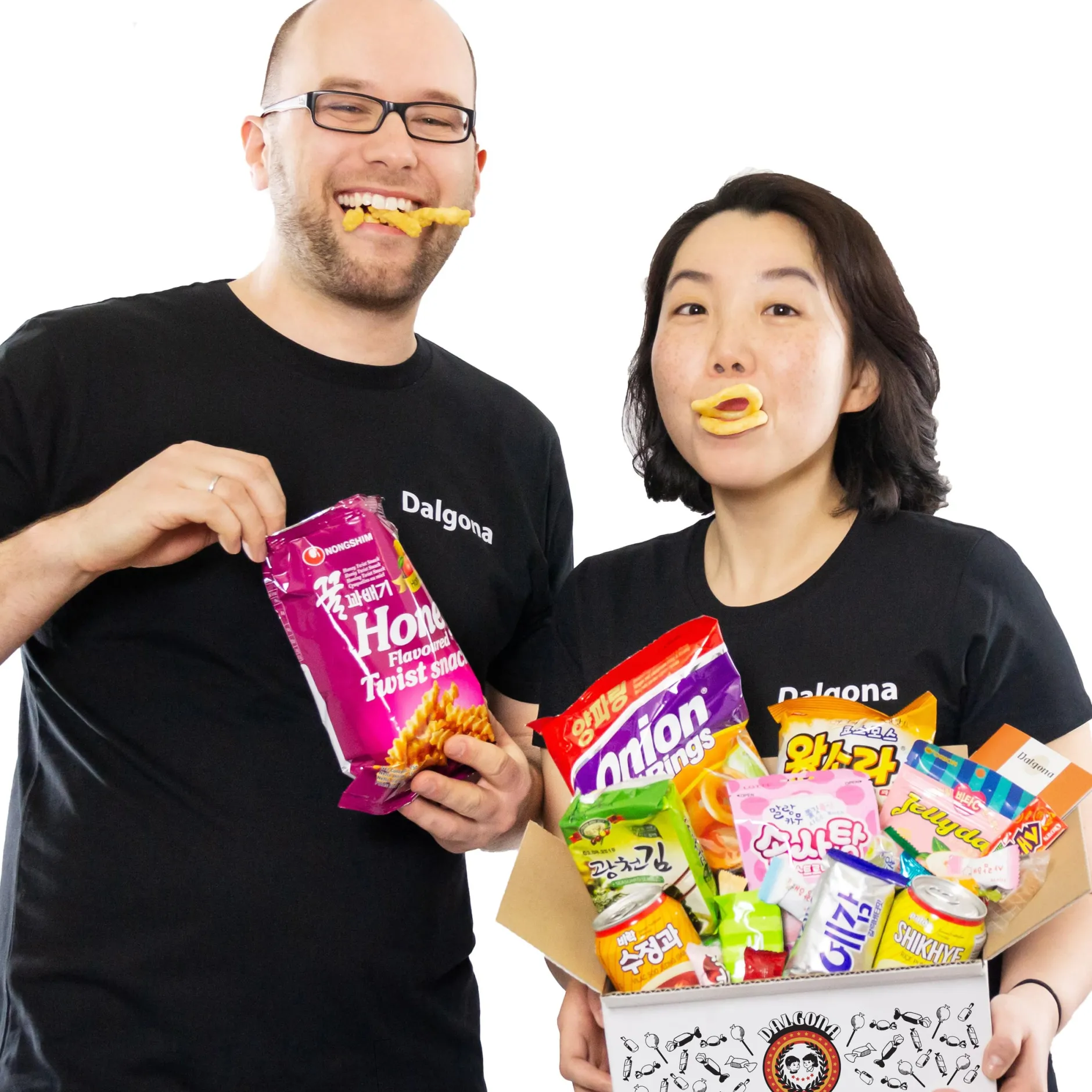 In unserer Dalgona-Box, der Überraschungsbox mit mindestens 30 koreanischen Süßigkeiten, findest du ausgewählte Snacks, die dich direkt in die belebten Straßen Seouls transportieren werden! Genau dort ist auch in den 70ern der beliebte Keks entstanden, dem die Box ihren Namen verdankt. Wenn man es schafft, um das Symbol auf dem Gebäck herumzubeißen, ohne es zu zerbrechen, erhält man vom Verkäufer einen zweiten Keks umsonst!