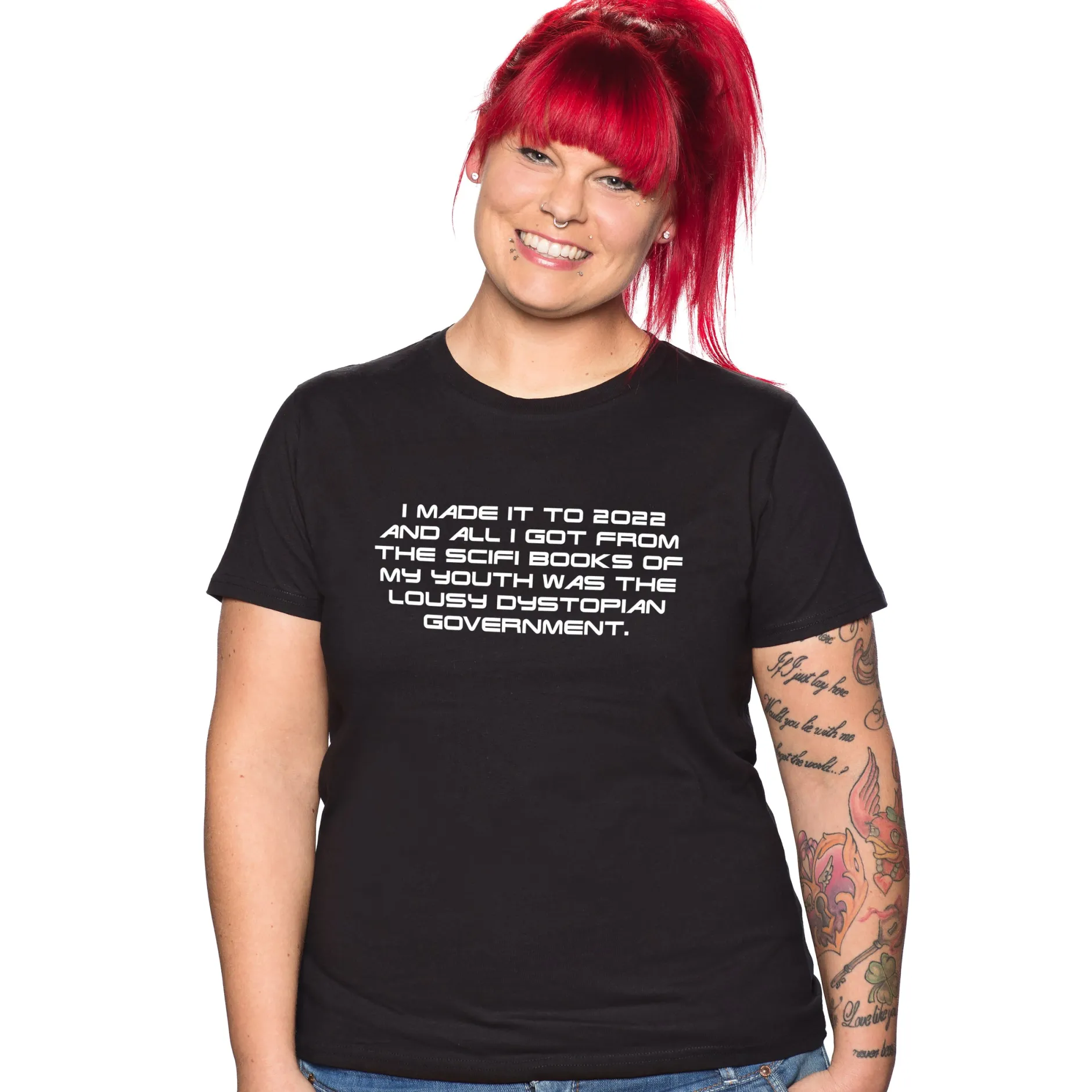 Ach warte, eine Sache hat sich doch bewahrheitet: Wie das „I made it to 2022“-Shirt zeigt, haben wir tatsächlich eine dystopische Regierung, die uns ausspioniert und über jeden Aspekt unserer Leben Bescheid wissen möchte. Ganz so schlimm wie in [i]1984[/i] ist es noch nicht, aber wer weiß, was NSA, BND und Co in Zukunft so geplant haben. [i]Big Brother is watching you![/i]