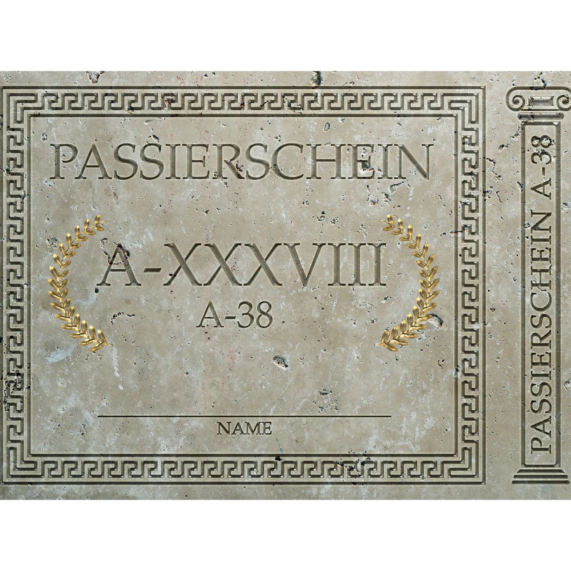 Seine Belohnung: der legendäre Passierschein A38 im Zehnerpack! Dieses sagenumwobene Schriftstück mussten die Gallier als Teil eines Wettkampfs mit Caesar in ihren Besitz bringen, was ihnen mit einer List auch gelang. Damit Du Dich nicht durch die Hölle der römischen Bürokratie kämpfen musst, findest Du in diesem Set gleich zehn Exemplare des Passierscheins in der aktualisierten Fassung nach Rundschreiben B-LXIV. Die goldenen Lorbeerkränze lassen direkt erahnen, dass Du ein wahrlich wichtiges Stück Geschichte in den Händen hältst. Und keine Sorge, den Passierschein A39 nach Rundschreiben B65 musst Du uns natürlich nicht vorlegen. 😉