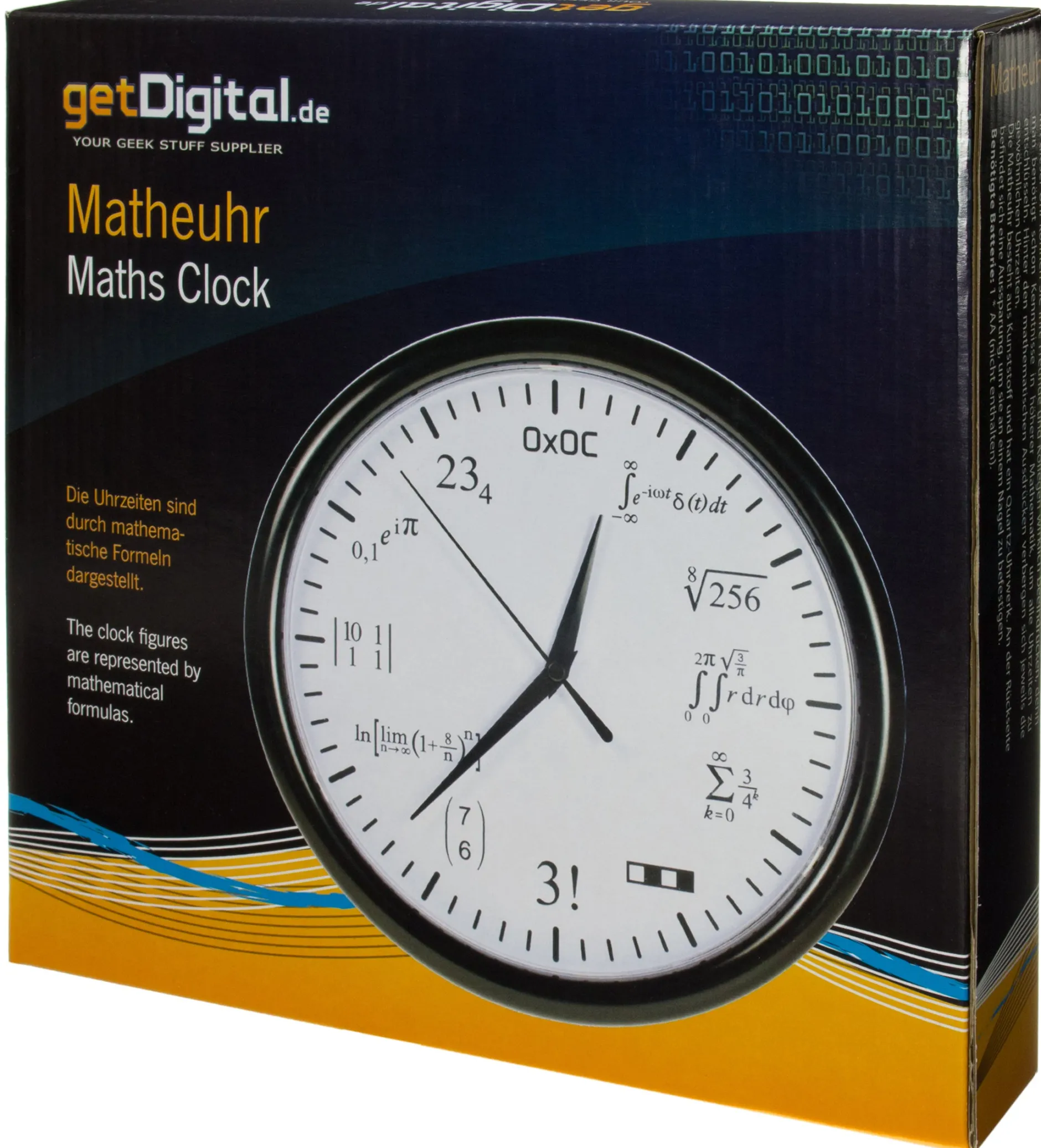 Beeindrucke mit Deinem mathematischen Fachwissen Deine Freunde und Kollegen, indem Du vor ihren Augen mit beneidenswerter Leichtigkeit die Aufgaben auf der Matheuhr löst, auch, wenn Du eigentlich keine Ahnung hast, was die Zeichen und Formeln bedeuten! Wissen ist relativ und die Zeit sowieso 🙂