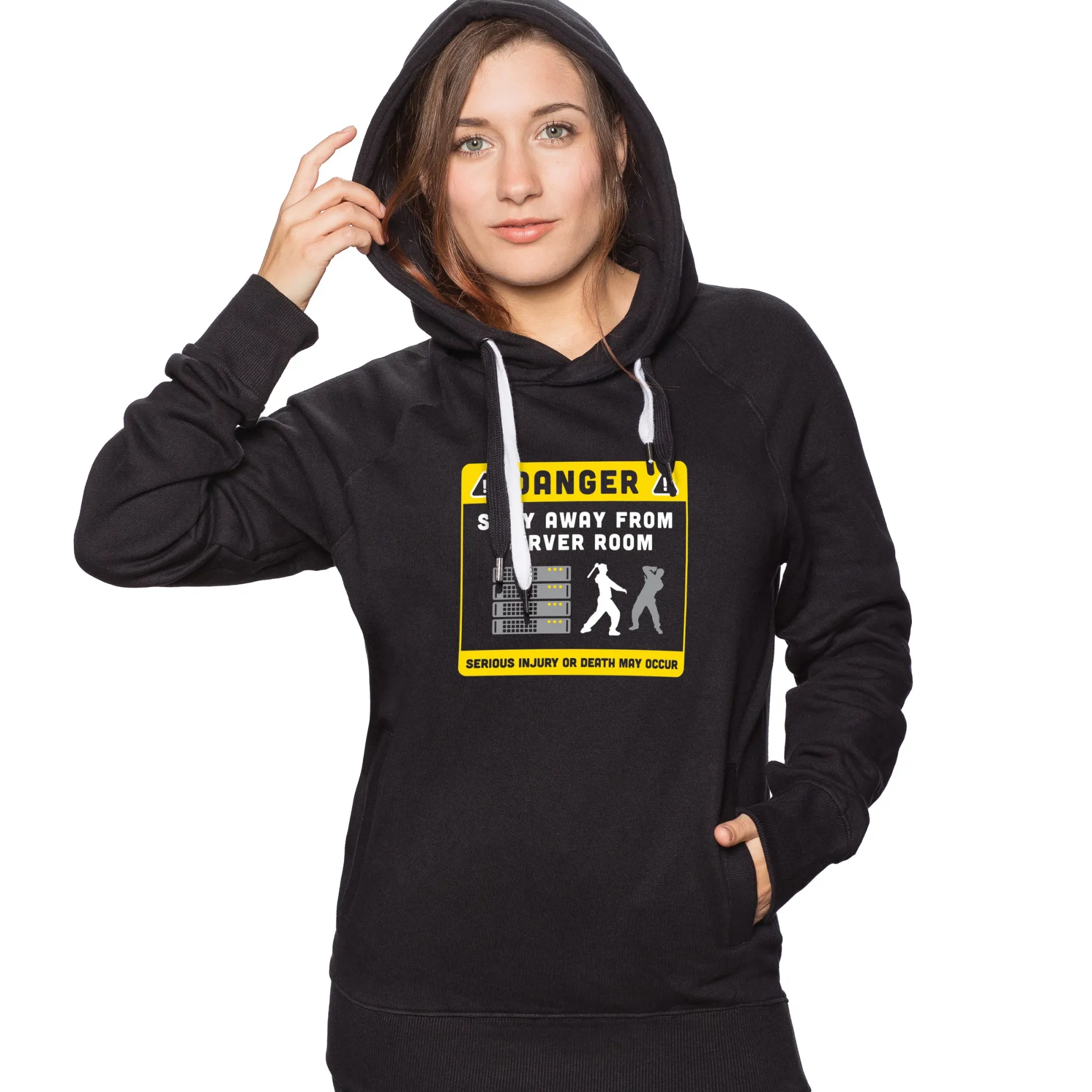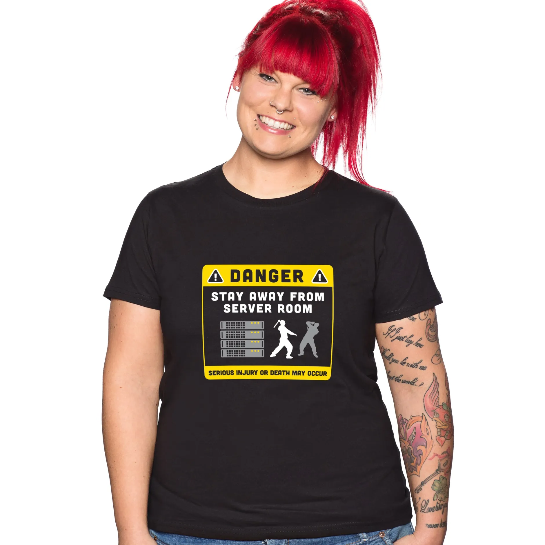 Und vielleicht ist er bewaffnet. Unterschätze nie einen Nerd. Vor allem nicht einen, der dieses “Stay away from Server” T-Shirt trägt!
