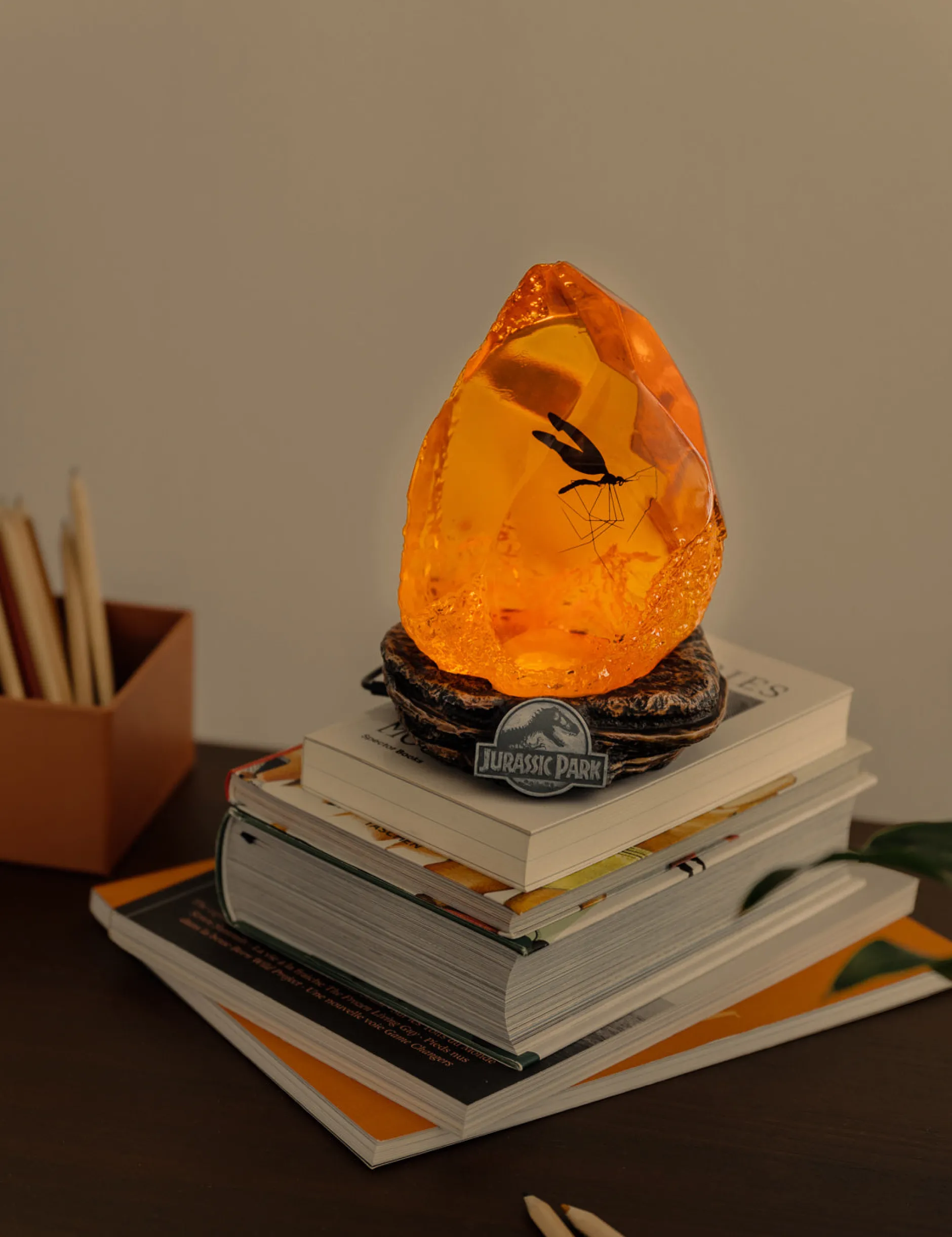 „Das Leben findet einen Weg.“ Dieses Zitat kommt dir bekannt vor? Dann wird die Jurassic Park Lampe: Bernstein mit Mosquito ganz sicher schon bald den Weg zu dir nach Hause finden. Die Lampe kommt in der Form eines großen Bernsteins daher, der auf einem steinern wirkenden Sockel steht. Im Inneren der Lampe befindet sich ein Mosquito, der so wirkt wie die stechenden Plagegeister, die vor vielen Millionen Jahren einen Dinosaurier gestochen haben könnten.