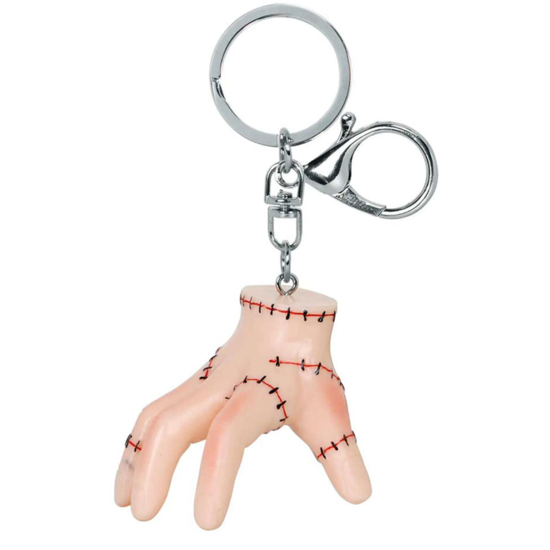 - Schlüsselanhänger in Form des Eiskalten Händchens aus der Netflix Serie „Wednesday“