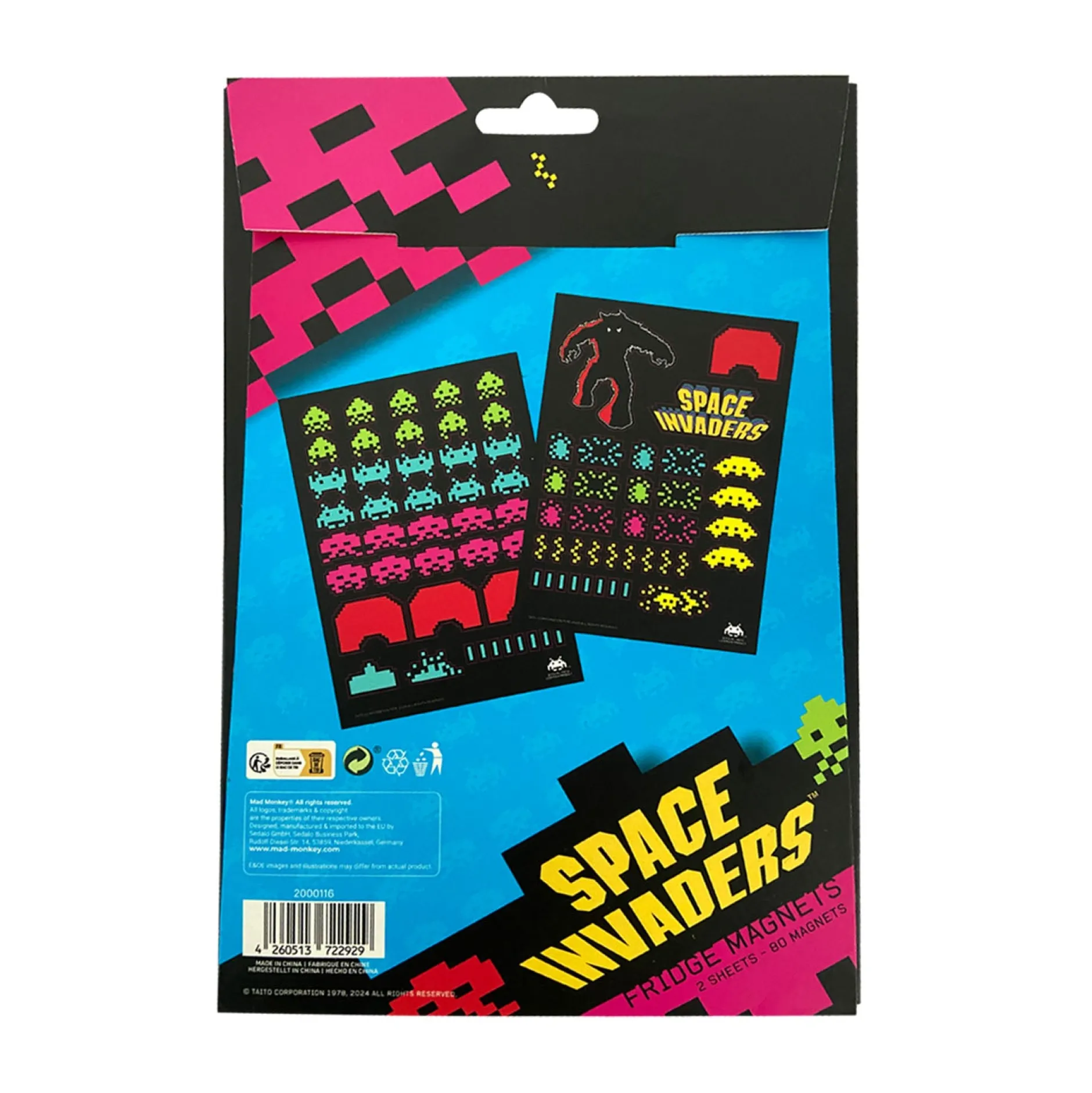 - Enthält 80 Magnete auf zwei Bögen im Space-Invaders-Design