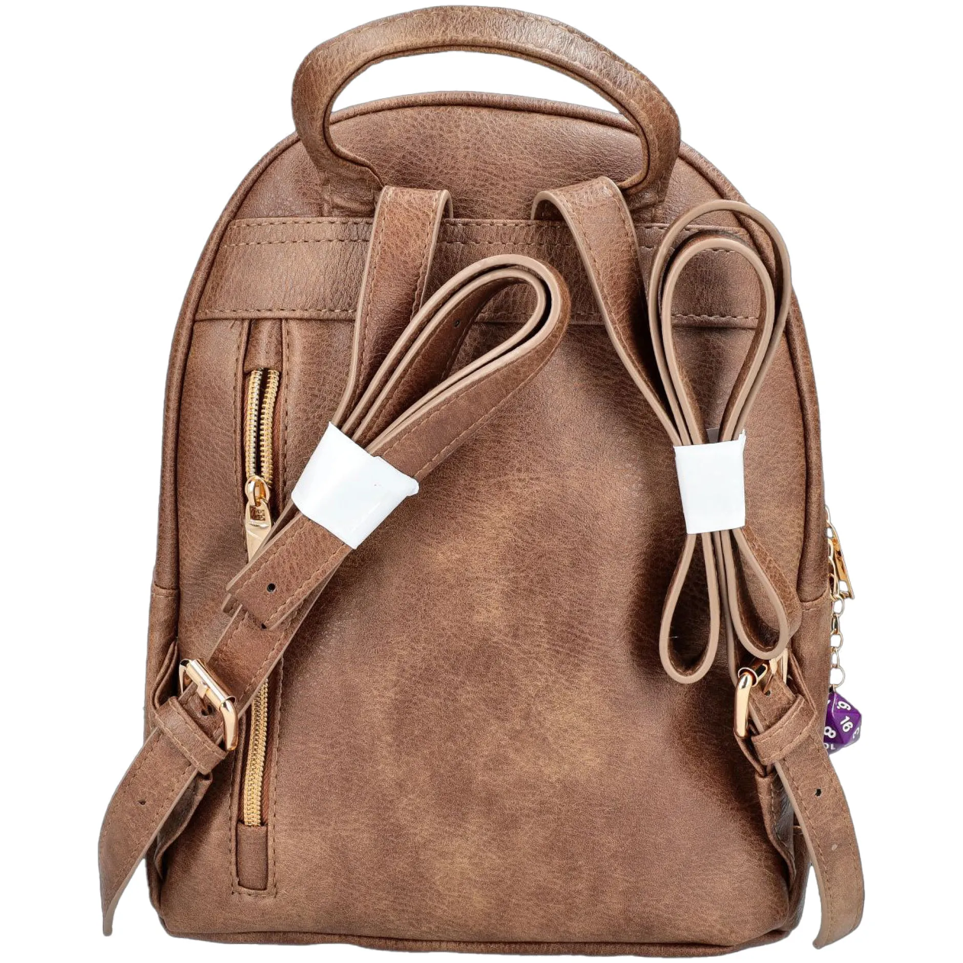 Der Rucksack ist offiziell lizenziert und besteht aus hochwertigem Kunstleder mit goldfarbenen Reißverschlüssen und einem gravierten D&D-Metalllogo auf der Front. Ein kleines, violettes W20-Würfelchen hängt stilecht am Zipper – immer bereit für spontane Glücksproben. Innen ist genug Platz für Regelbücher, Notizblöcke, Miniaturen und Proviant. Mit verstellbaren Trägern und einem versteckten Reißverschlussfach auf der Rückseite bleibt alles sicher verstaut – auch wenn dein SL mal wieder mit Random Encountern um sich wirft.