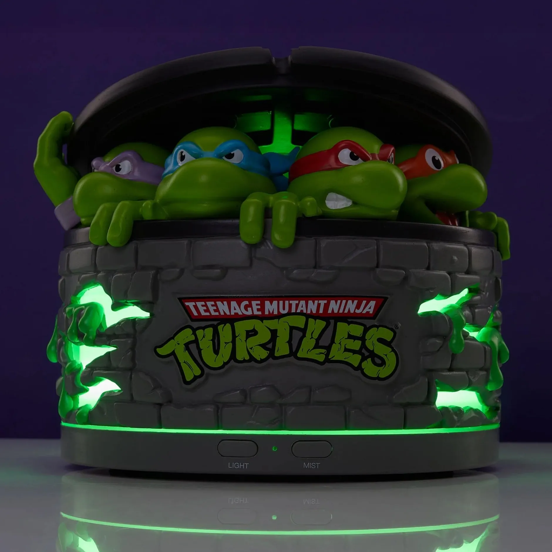 Du brauchst keinen Mutagen-Schleim, um dein Zuhause mit Turtle Power zu erfüllen – ein paar Tropfen Aroma-Öl reichen vollkommen. Der Teenage Mutant Ninja Turtles Aroma-Öl Diffusor bringt dir den Geruch eines sauberen Kanalisationsverstecks in New York (ja, das gibt’s!) direkt ins Wohnzimmer – und zwar mit ordentlich Stil. Die vier Turtles blicken aus ihrem Sewer-Lid-Versteck hervor, während sich darunter ein leuchtender Diffusor verbirgt, der deinen Raum in sanften Nebel und LED-Glow hüllt.