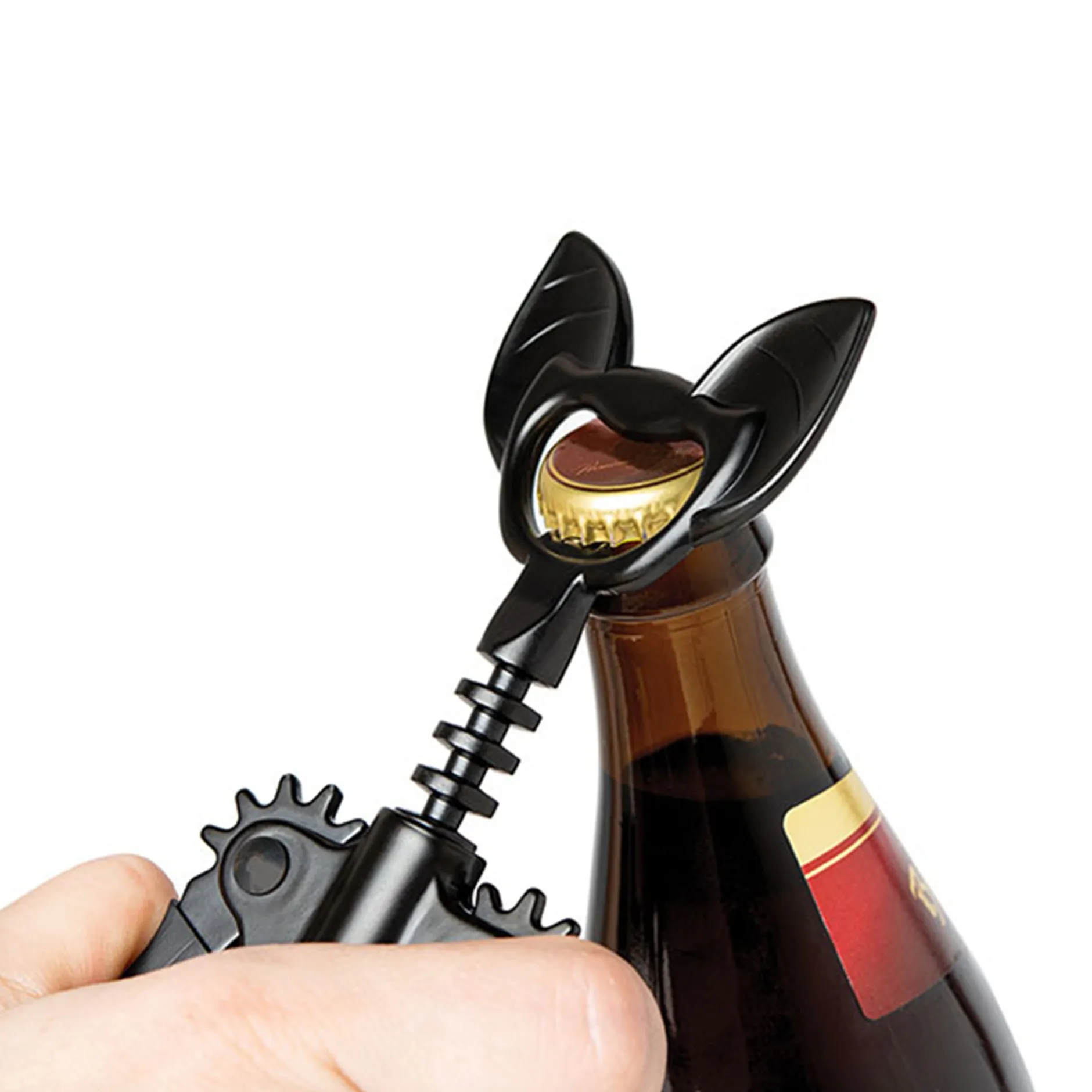 - Flaschenöffner und Korkenzieher in einem, mit dem Aussehen einer Fledermaus