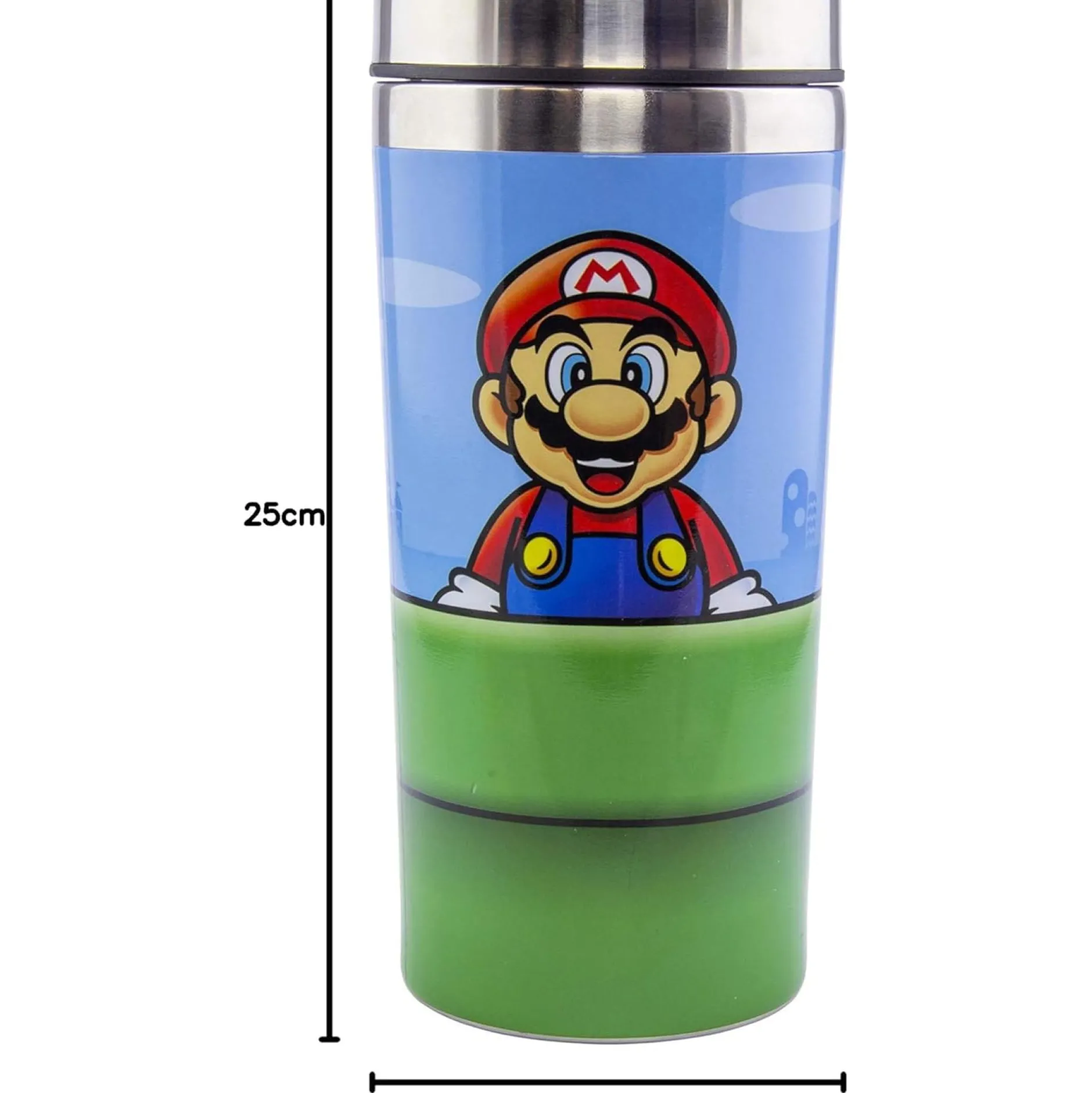 - Edelstahl-Reisebecher (ca. 450 ml) mit Kunststoffdeckel und Mario/Luigi-Motiv