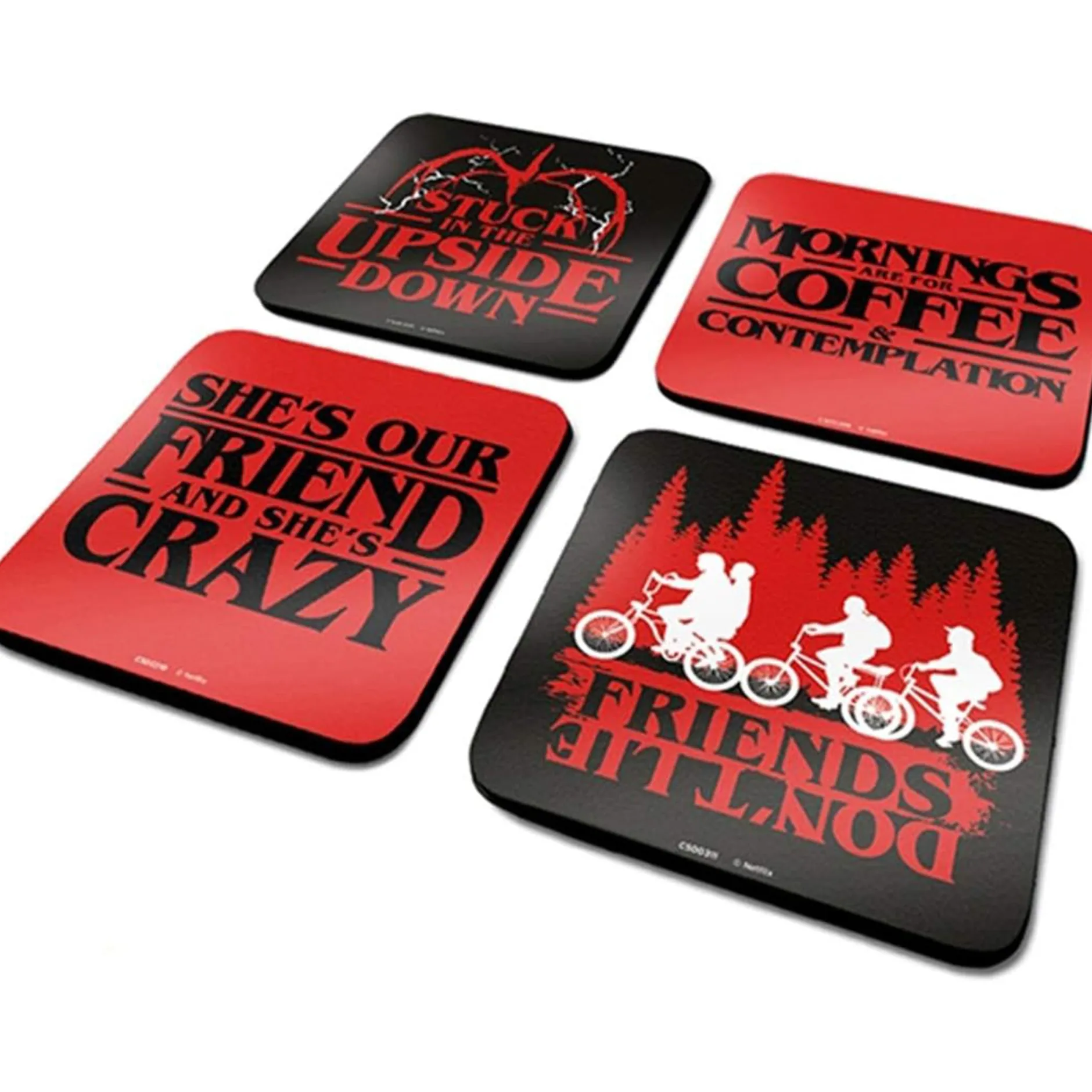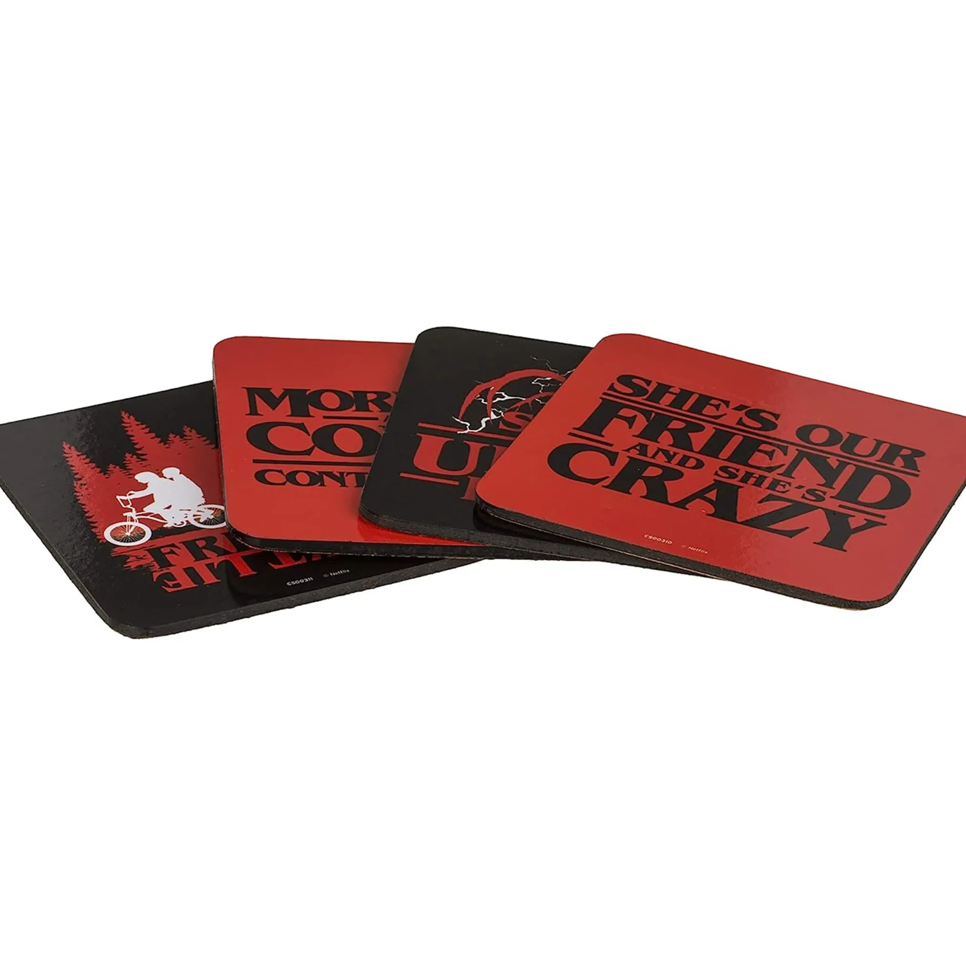 - 4 Untersetzer mit Motiven und Zitaten aus der Netflix-Serie „Stranger Things“