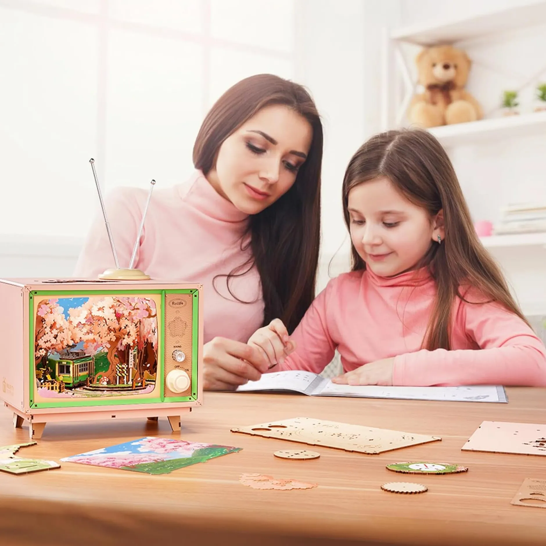 Tauche ein in eine zauberhafte Miniaturwelt der Kirschblütenzeit! Der Sakura Traumtour Retro TV Spieluhr Holzbausatz bringt nostalgischen Charme und moderne Technik in einem liebevoll gestalteten DIY-Projekt zusammen. Inspiriert vom Retro-Fernseher-Design entfaltet sich im Inneren eine dynamische Szenerie mit einer fahrenden Straßenbahn unter blühenden Kirschbäumen – begleitet von Musik, Licht und Bewegung.