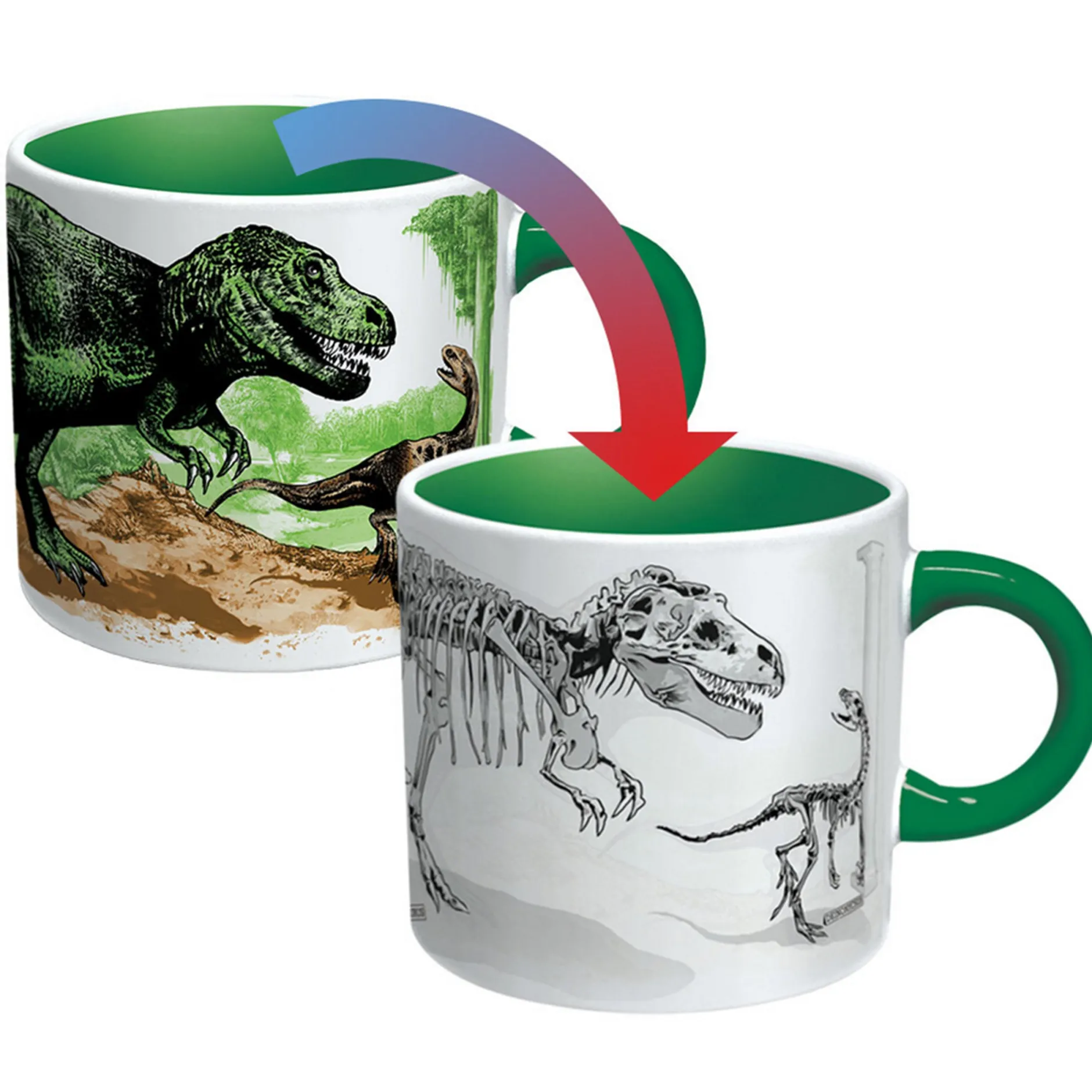 - Sobald ein heißes Getränk eingefüllt wird, verwandeln sich die Dinos in Fossilien