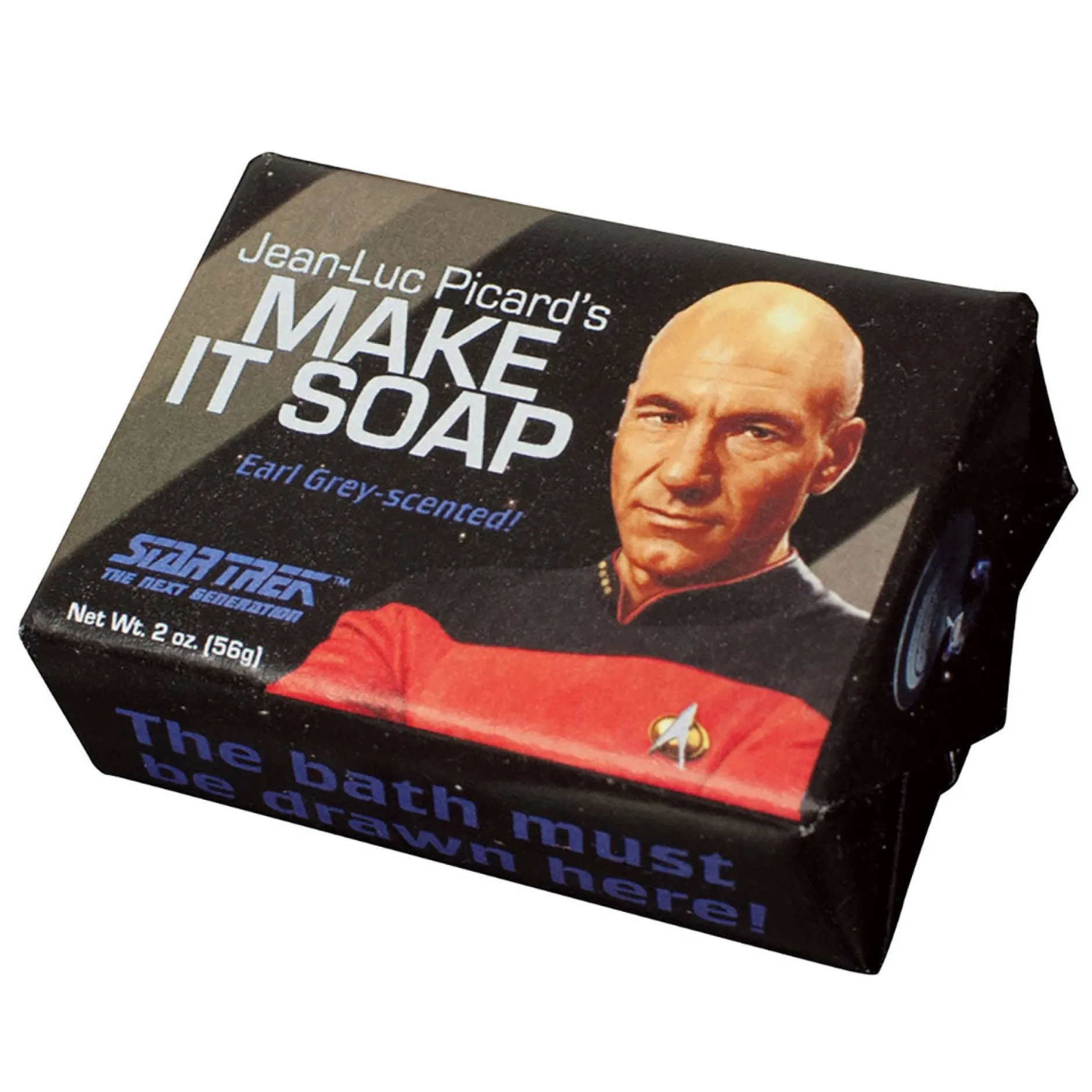 Aber Earl Grey trinkt man nicht nur, man lebt Earl Grey! Falls Du zu den Erleuchteten gehörst, wirst Du Deinen Körper von nun an selbstverständlich nur noch mit Make it Soap – der Star-Trek-Seife mit Earl-Grey-Aroma reinigen! Dieser Block Seife duftet nämlich nach dem himmlischen Gemisch aus Tee und Bergamotte, das Picard durch unzählige Abenteuer gelotst hat! Ab sofort lässt sich Dein Geruch also mit „Tea, Earl Grey, Hot“ beschreiben…