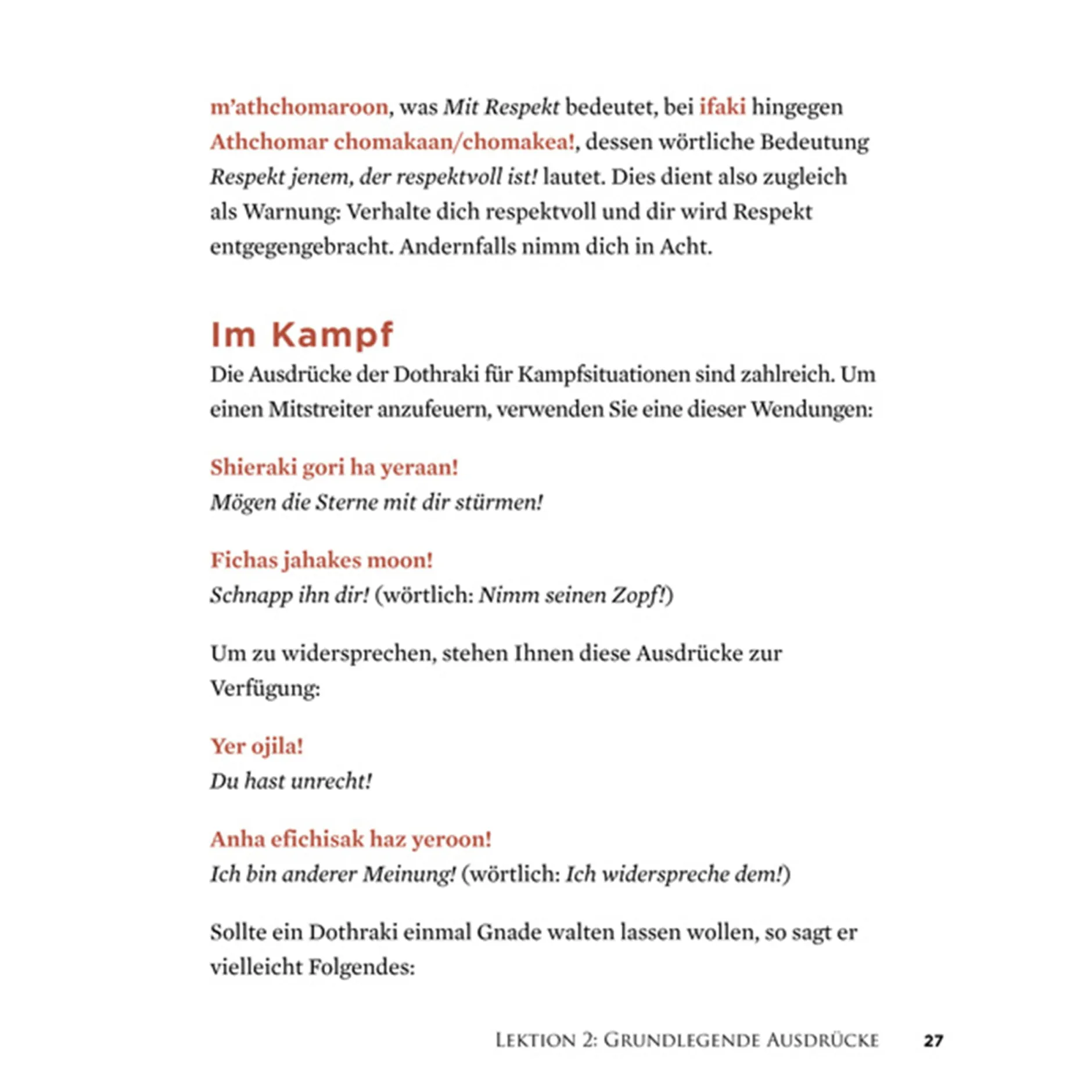 - Lehrbuch und Audio-CD zum Erlernen der Dothraki-Sprache aus der Serie “Game of Thrones”