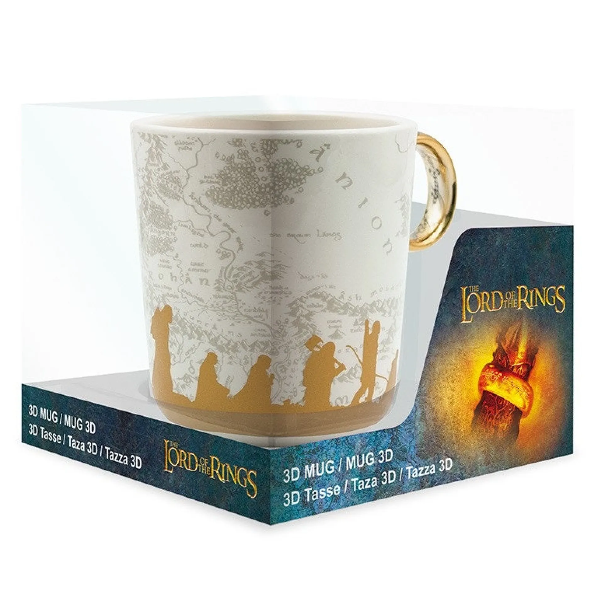 Tritt in die Fußstapfen von Bilbo und Frodo und werde zum Ringträger. Mit dieser Tasse, dem Getränk deiner Wahl und einem Moment der Ruhe bist du bestens gerüstet für den Tag und kommende Abenteuer. Das liebevoll gestaltete Motiv erinnert an die Reise der neun Gefährten und lädt zum gedankenverlorenen Stöbern auf der Landkarte von Mittelerde ein. Der gravierte Henkel ist bis ins kleinste Detail dem Ring aus dem Film nachempfunden. Um langfristig etwas von der Tasse zu haben, sollte sie allerdings von Mikrowellen, Spülmaschinen und den Feuern des Schicksalsberges ferngehalten werden.