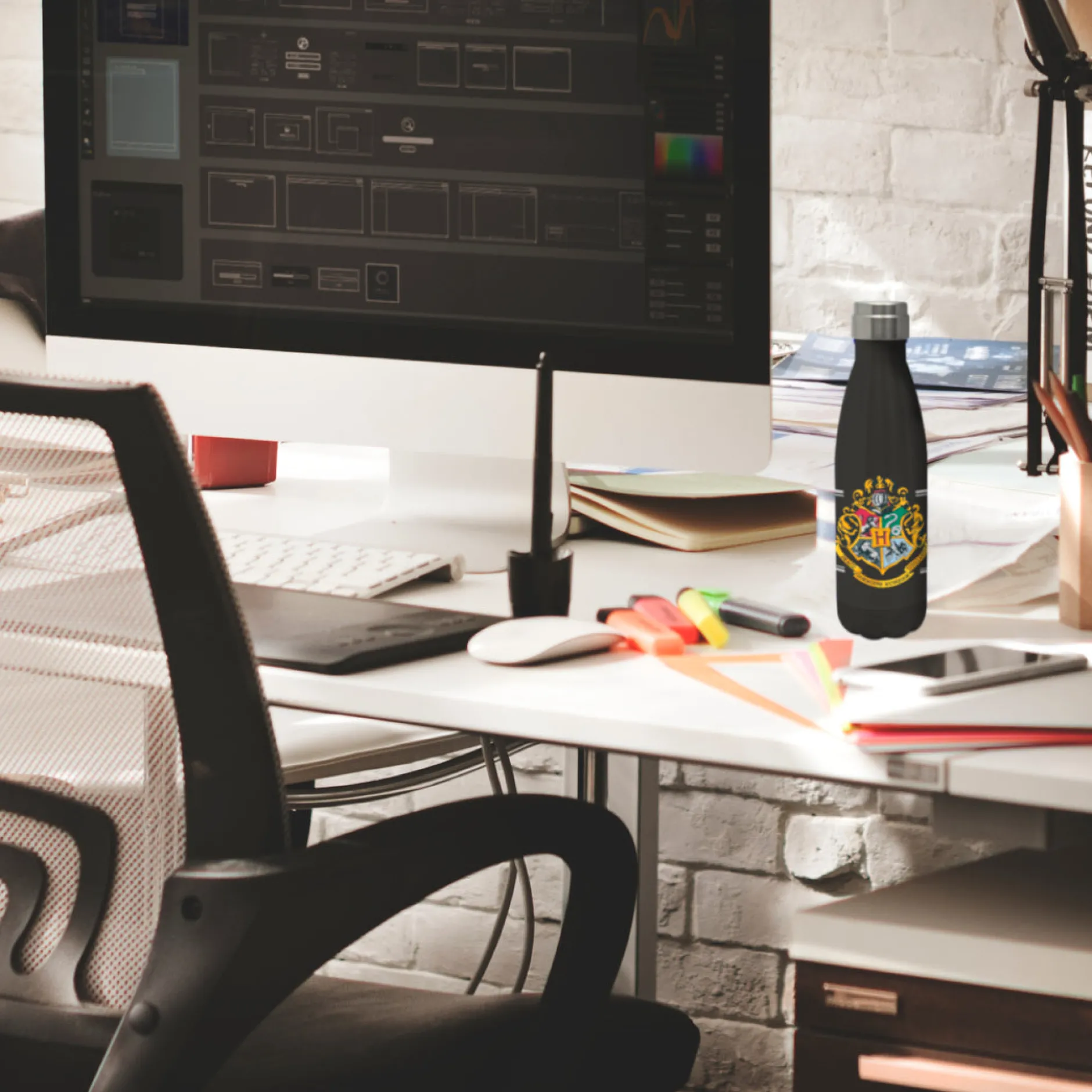 Wenn du dich dafür entscheidest, sie mit zur Arbeit zu nehmen, solltest du dir allerdings darüber bewusst sein, dass die Flasche akute Sehnsucht auslösen kann. Das Wappen und die Silhouette von Hogwarts erinnern dich nämlich bei jedem Schluck daran, wo du jetzt eigentlich lieber wärst…