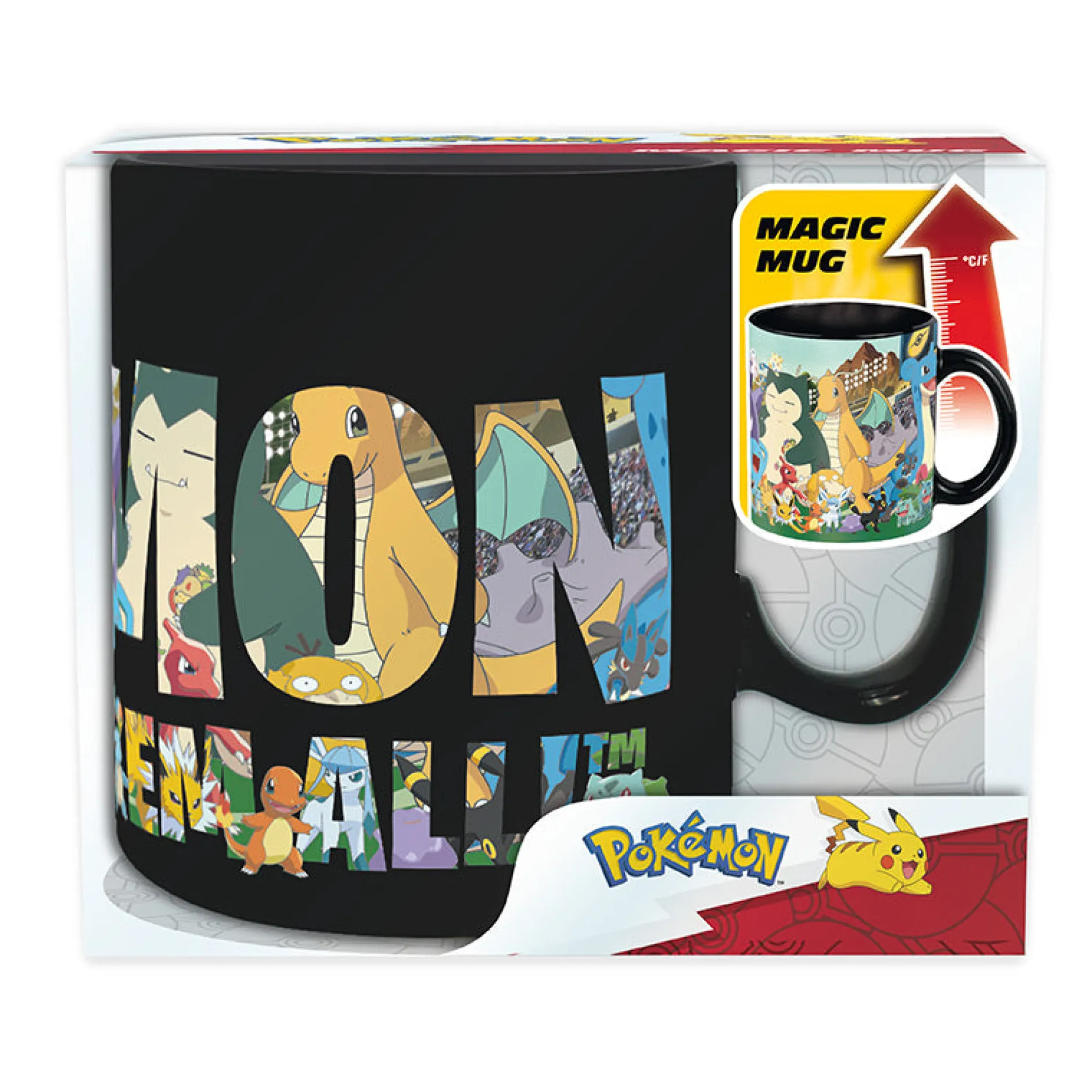 Bist du bereit dein Getränk auf die nächste Level zu bringen? Mit dem Pokémon Thermo-Effekt Becher „Gotta catch em all“ hast du ein echtes Sonderbonbon in der Hand.Im kalten Zustand ziert der Pokémon Schriftzug die Farbwechsel-Tasse und gibt bereits einen kleinen Vorgeschmack auf das Motiv was sich auf ihr verbirgt. Wird heiße Flüssigkeit eingefüllt, entwickelt sich ein farbenprächtiges Motiv mit vielen ikonischen Pokémon die wir auf unseren Reisen durch Kanto, Johto, Hoenn und Co. kennen und lieben gelernt haben – ein wahrer Augenschmaus für jeden Trainer!
