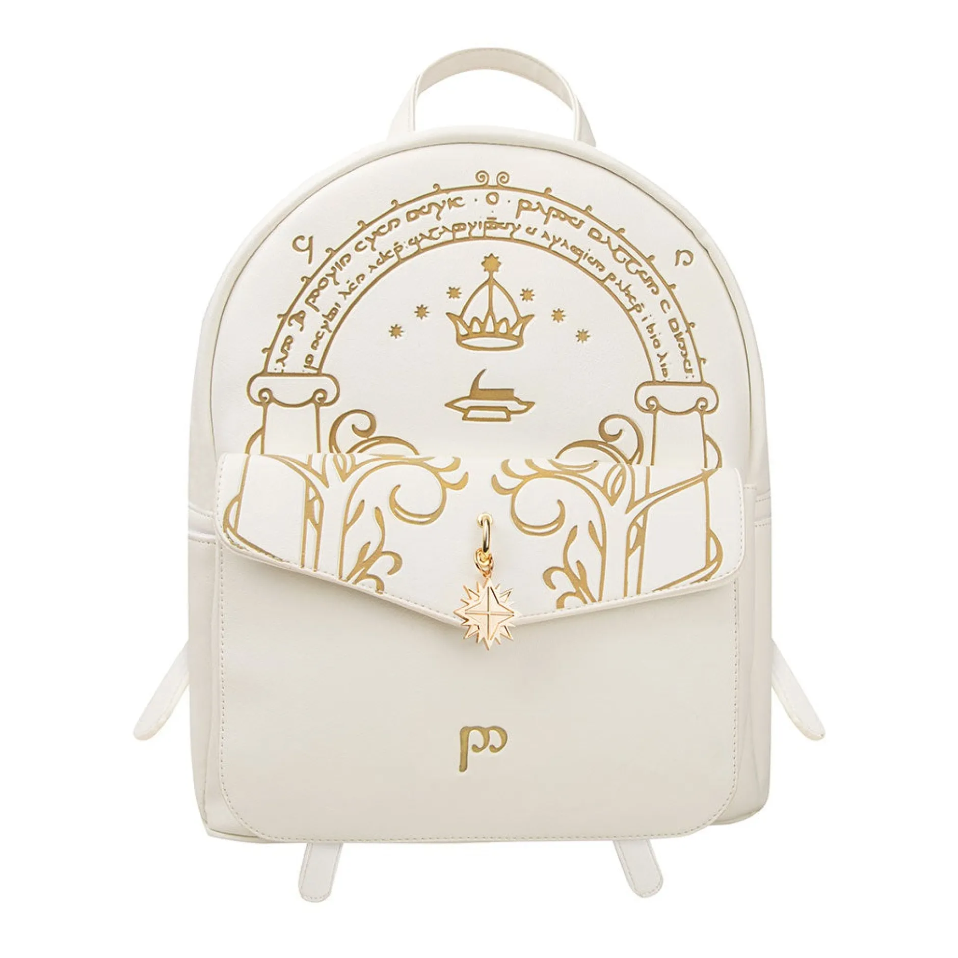 Der Rucksack ist in Weiß gehalten und der Aufdruck in edel anmutendem Gold. Wie auch die Aufschrift auf dem Felstor aus Film und Buch, leuchtet der Aufdruck im Dunkeln. Der Stern, welcher auf den Türen Durins zu sehen ist, dient beim Rucksack als Anhänger zum Öffnen der Vordertasche. Das Innere des Rucksackes bietet zwar viel Platz für Lembas, richtiges echtes Elbenseil, Pfeifenkraut und andere Alltagsgegenstände, einen Balrog von Morgoth musst du in seinen Tiefen allerdings nicht fürchten, egal wie tief zu gräbst.