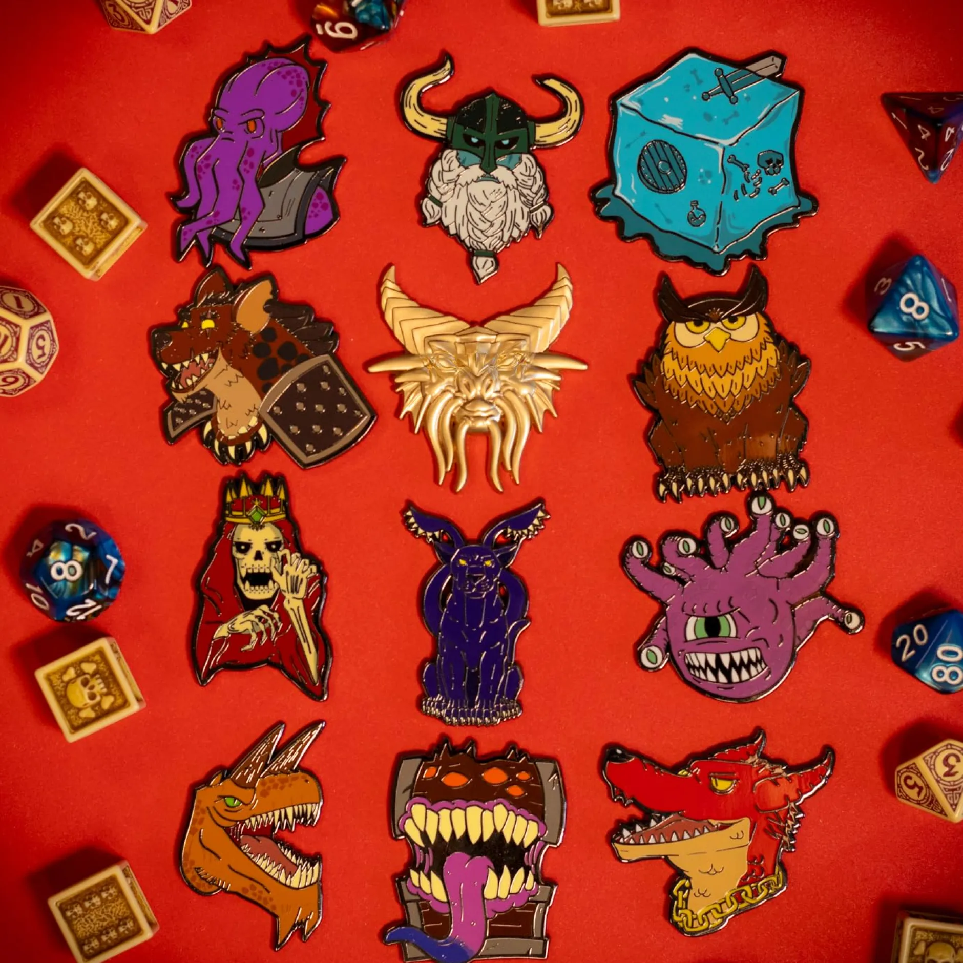 Jede Packung enthält einen zufälligen Emaille-Pin aus insgesamt 12 ikonischen Designs – darunter Kult-Kreaturen wie der Beholder, der Mimic, das Tarrasque, der Mind Flayer oder der Owlbear. Die Pins sind hochwertig verarbeitet und präsentieren sich in kräftigen Farben mit liebevollen Details. Der wahre Schatz? Mit etwas Glück ziehst du den streng limitierten goldenen Drachen-Pin – ein funkelndes Highlight aus Bahamut’s persönlichem Hort. Ob an Rucksack, Kutte oder Würfelbeutel – diese Pins sind absolute Hingucker.