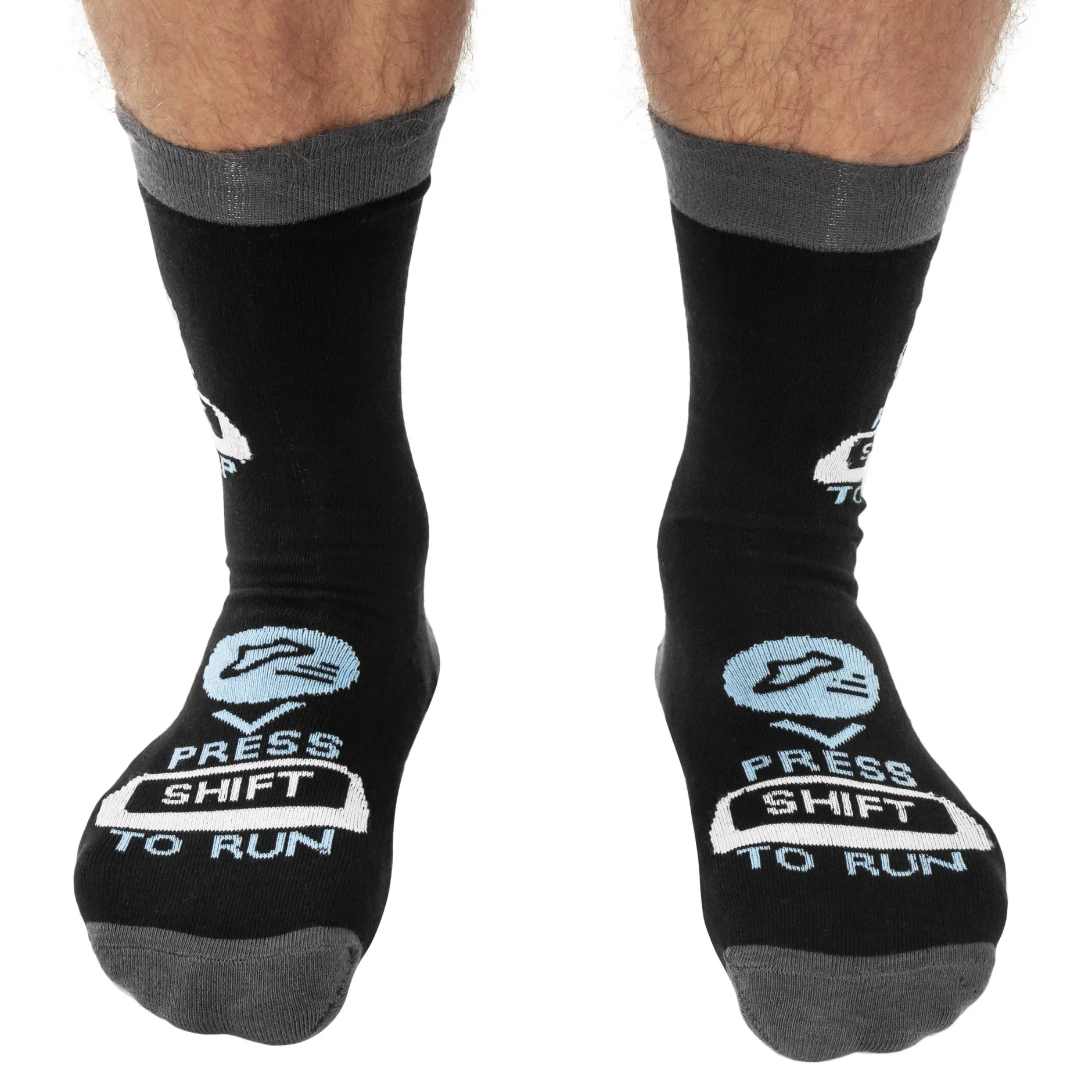Falls Du trotzdem manchmal vergisst, wie Du Dich bewegst, helfen Dir die Gaming-Socken aus: Auf diesen wunderbar weichen Socken findest Du nämlich die wichtigsten Tastaturbelegungen, die es gibt! Zum Laufen musst Du einfach nur Shift drücken, zum Springen Space. Hätten wir das nur damals im Sportunterricht gewusst… 😉 Außerdem weist die Unterseite der Socken Dein Umfeld darauf hin, dass Du etwas Heilung benötigst.