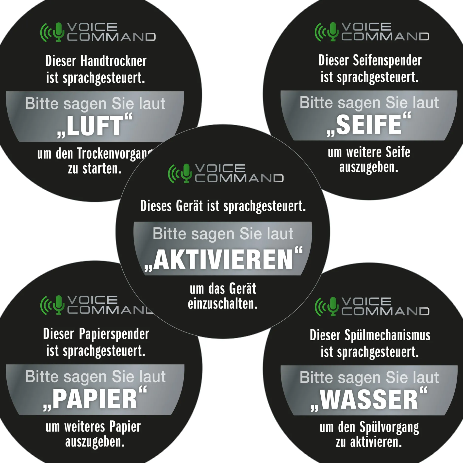 Mit den „Voice Command“-Aufklebern in fünf Varianten kannst Du Dir einen Scherz erlauben und die Leute in Deinem Umfeld verwirren, die sich ein bisschen zu sehr auf digitale Assistenz verlassen: Jeder der Aufkleber erweckt den Anschein, dass das Gerät, auf dem er prangt, per Sprachbefehl aktiviert werden kann – der passende Befehl steht praktischerweise ebenfalls auf dem Aufkleber. Richtig eingesetzt kannst Du dafür sorgen, dass Kollegen, Mitbewohner und Co. auf einmal anfangen, Papierspender, Kaffeemaschinen und sogar die WC-Spülung anzuschreien, wenn diese einfach nicht auf die Kommandos reagieren. 😀