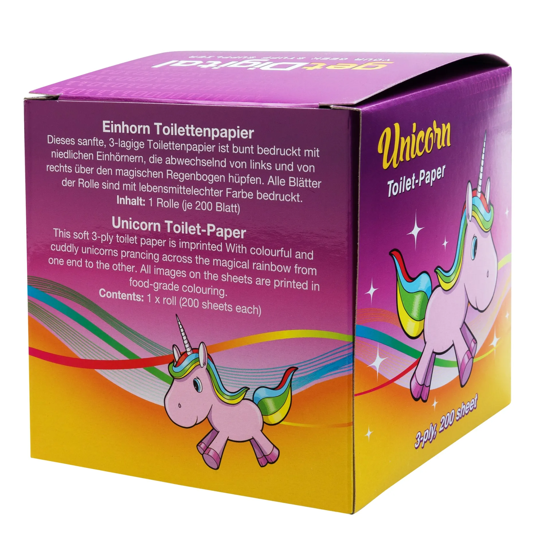 - Sanftes, dreilagiges Toilettenpapier mit buntem Einhornaufdruck