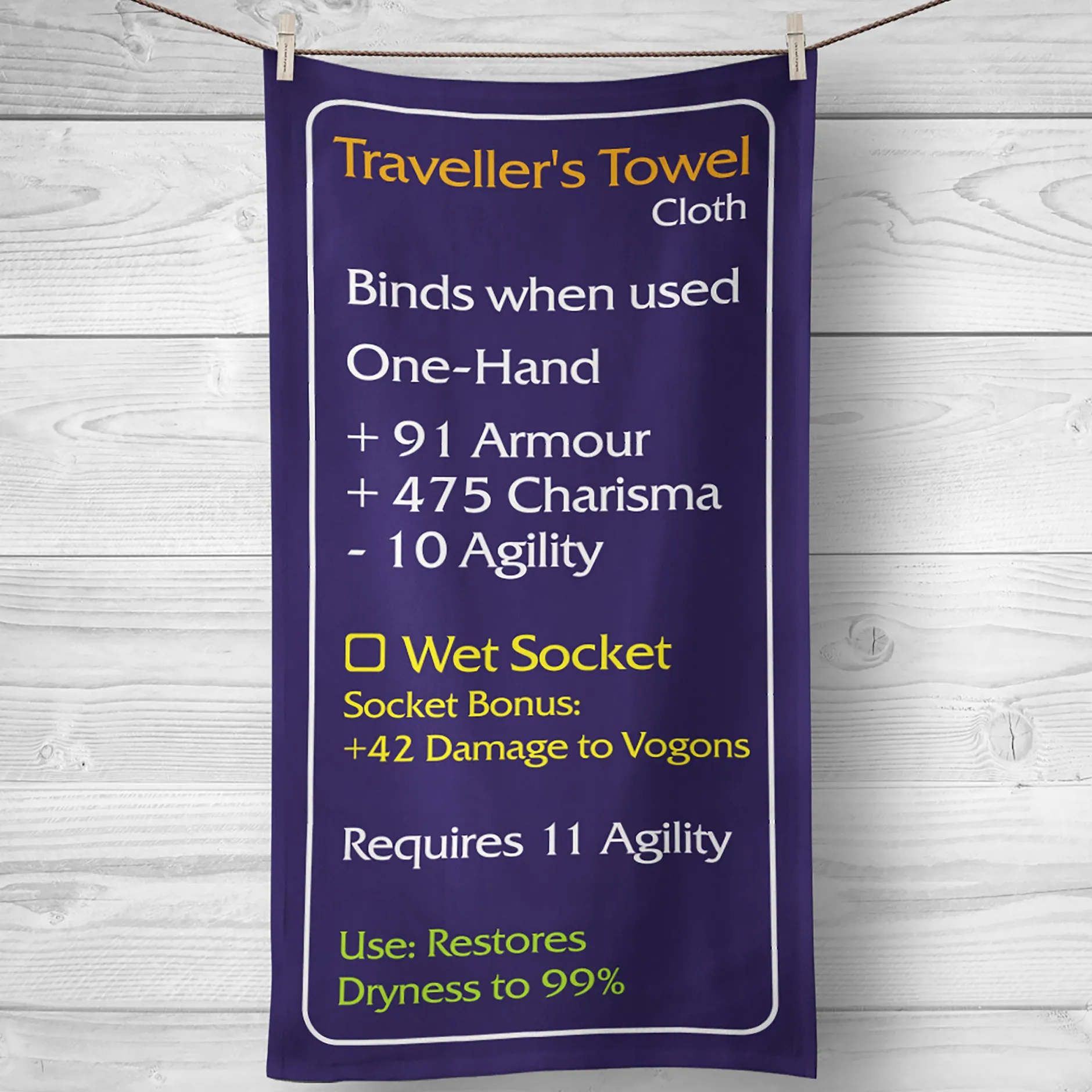 - Zeigt die Werte des Ausrüstungsgegenstandes „Traveller’s Towel“