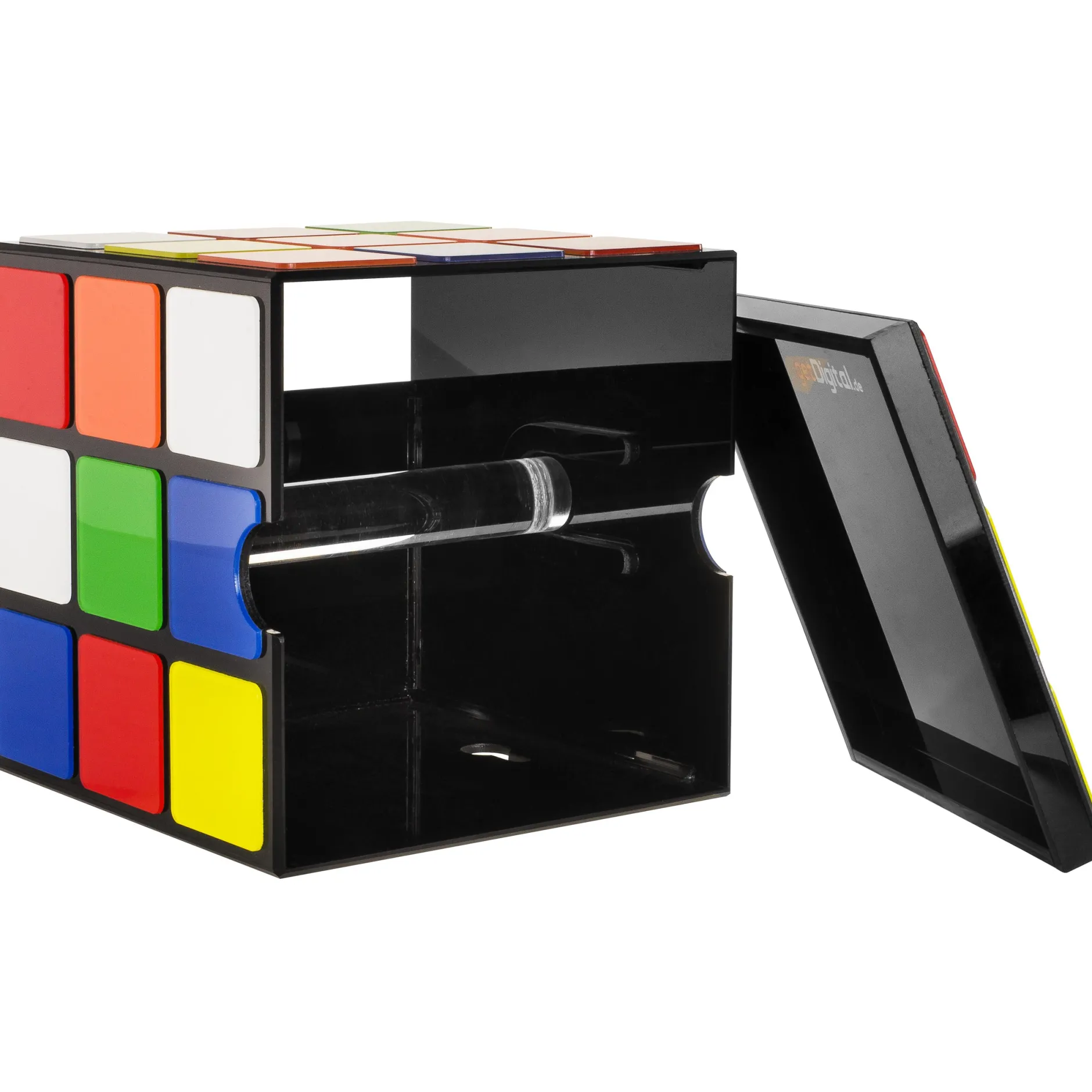 Mit dem Zauberwürfel-Toilettenpapierhalter kannst Du Dich endgültig von tristen Farbtönen verabschieden und Dir die zeitlose Magie der 80er in Deinen Thronsaal holen. Der Halter ist dem kultigen Zauberwürfel nachempfunden, der seit mehreren Jahrzehnten Groß und Klein mit seinem simplen und dennoch herrlich komplexen Prinzip fesselt. Die Inbetriebnahme ist denkbar einfach: Deckel abnehmen, Rollenhalter mit einer Rolle Toilettenpapier bestücken, wieder einfügen und den Würfel verschließen.