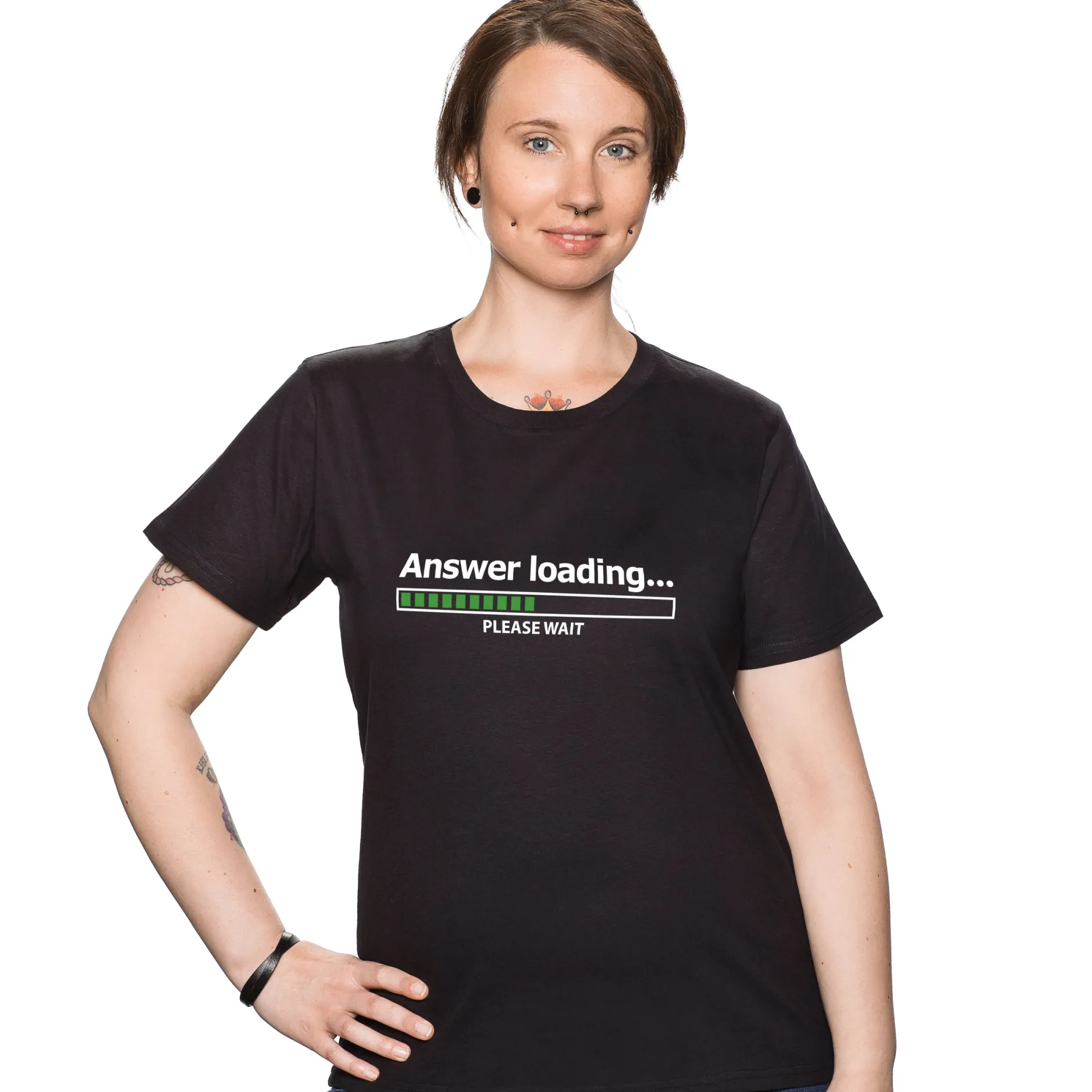 Wenn Du auch immer ein bisschen Zeit brauchst, um auf die Fragen Deiner Mitmenschen zu antworten, dann kannst Du das ab jetzt mit diesem Shirt schon deutlich machen, bevor jemand auch nur das Wort an Dich gerichtet hat.