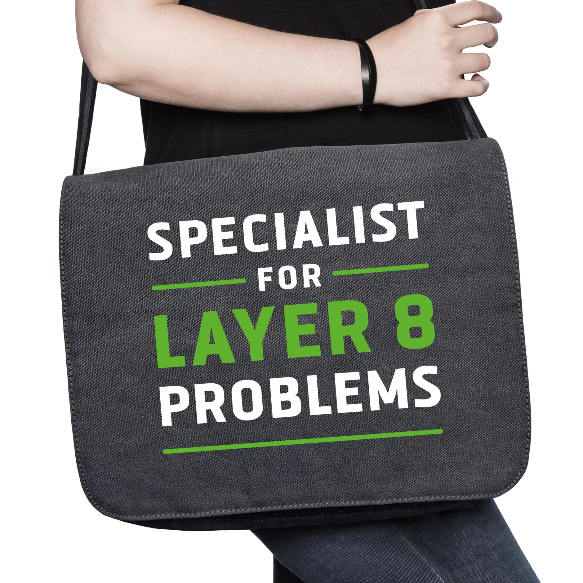 Denn das „Specialist for Layer 8 Problems”-T-Shirt weist die Person, die es trägt, als Experten bzw. Expertin für Probleme mit der (fast ausschließlich scherzhaft benutzten) achten Schicht des OSI-Modells für Netzwerkprotokolle aus. Wie wir alle wissen, liegt das Problem nämlich häufig nicht in der Technik an sich, sondern eher bei den Menschen, die mit dieser Technik nicht umgehen können. Und dieses T-Shirt prädestiniert Dich von nun an als die Person, die sich mit DAUs, wandelnden PEBKACs und Co. herumschlagen darf. 😉