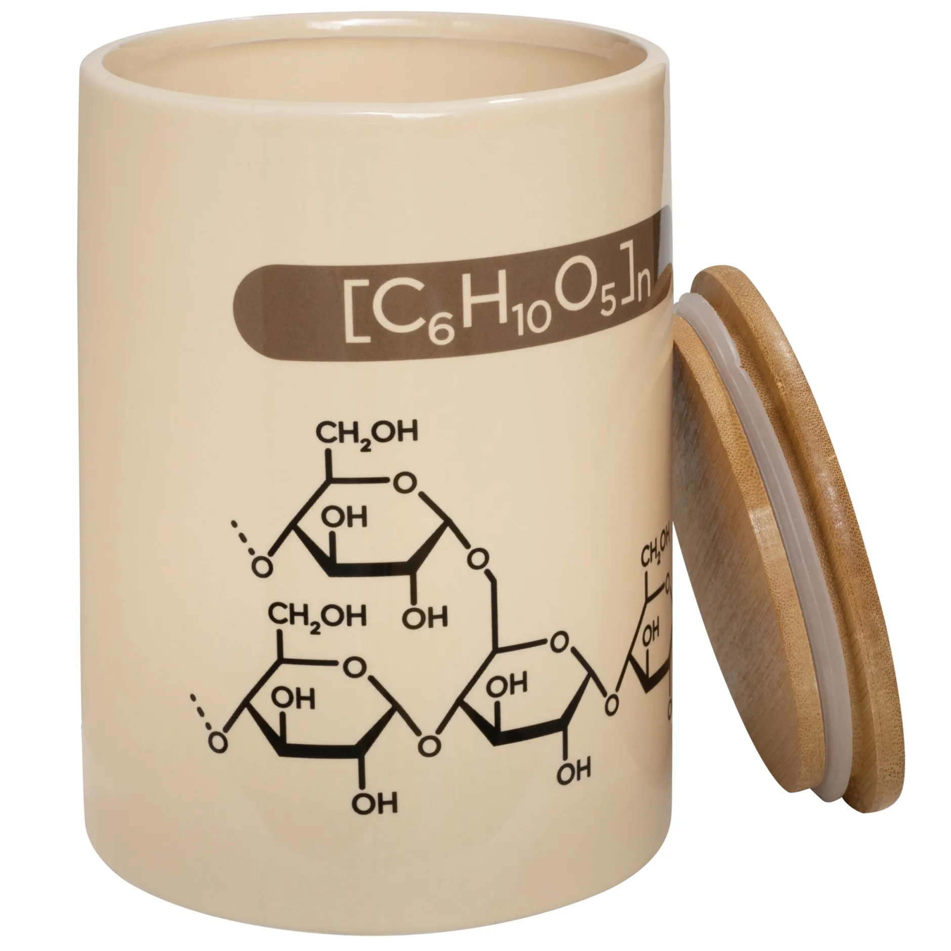 Für alle Chemiker*innen und sonstigen Wissenschaftler*innen gibt es jetzt den perfekt geeigneten Vorratsbehälter Mehl mit chemischen Formeln, mit dem ihr euch das Labor-Feeling jederzeit nach Hause in die eigene Küche holen könnt. Die Keramikdose ist mit der korrekten chemischen Formel für ihren Inhalt beschriftet und zeigt die passende Strukturformel. Der Deckel ist aus Bambus und hat eine praktische Silikondichtung.