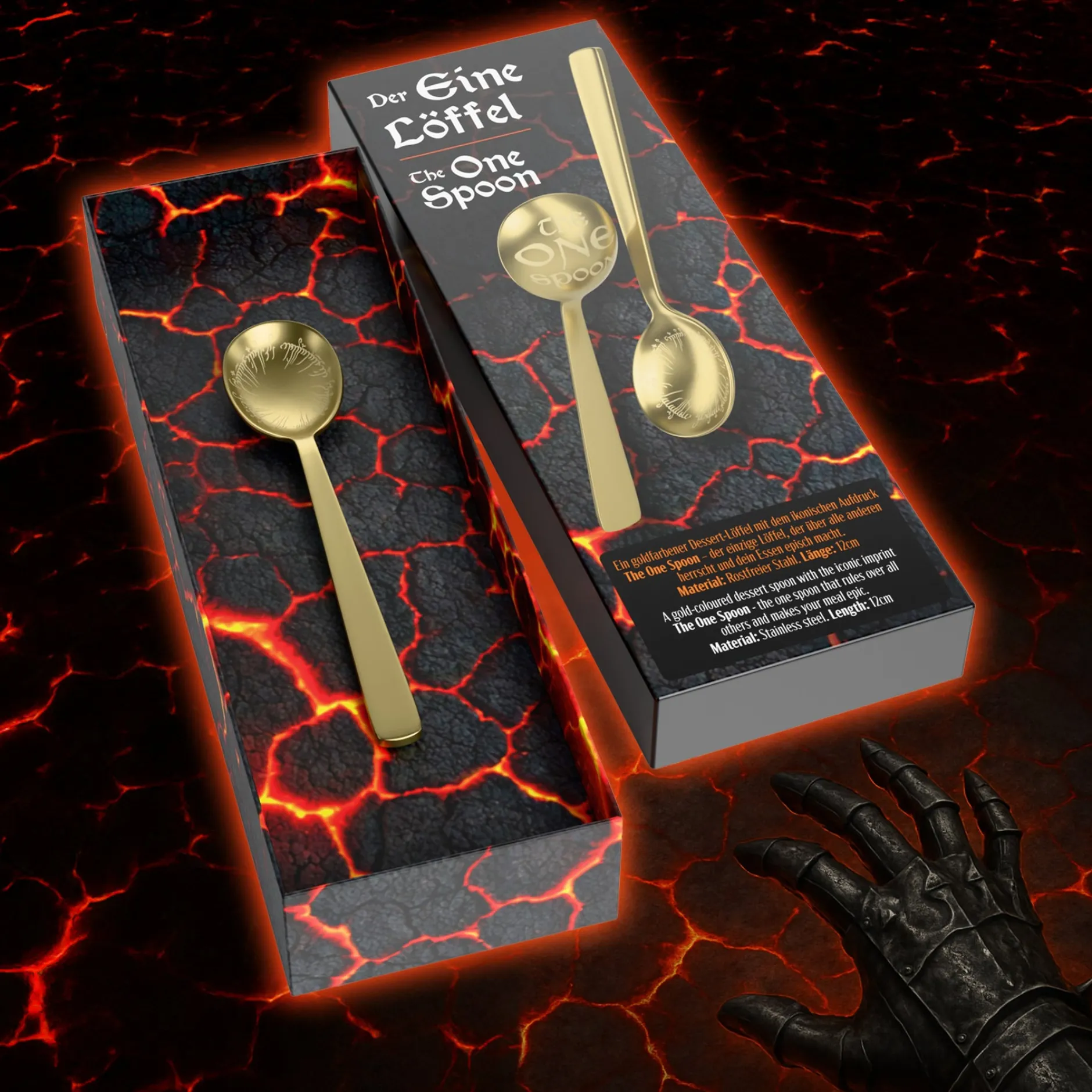Er mag zwar nicht in den Feuern eines bedrohlichen Vulkanes geschmiedet worden sein und macht seinen Träger auch nicht unsichtbar, aber dennoch strotzt Der Eine Löffel nur so vor Macht in Form von kultiger Ästhetik. Mit dieser neuen Eigenentwicklung aus den dunklen Landen von getDigital, wird sich ein jedes Dessert deinem Willen beugen.