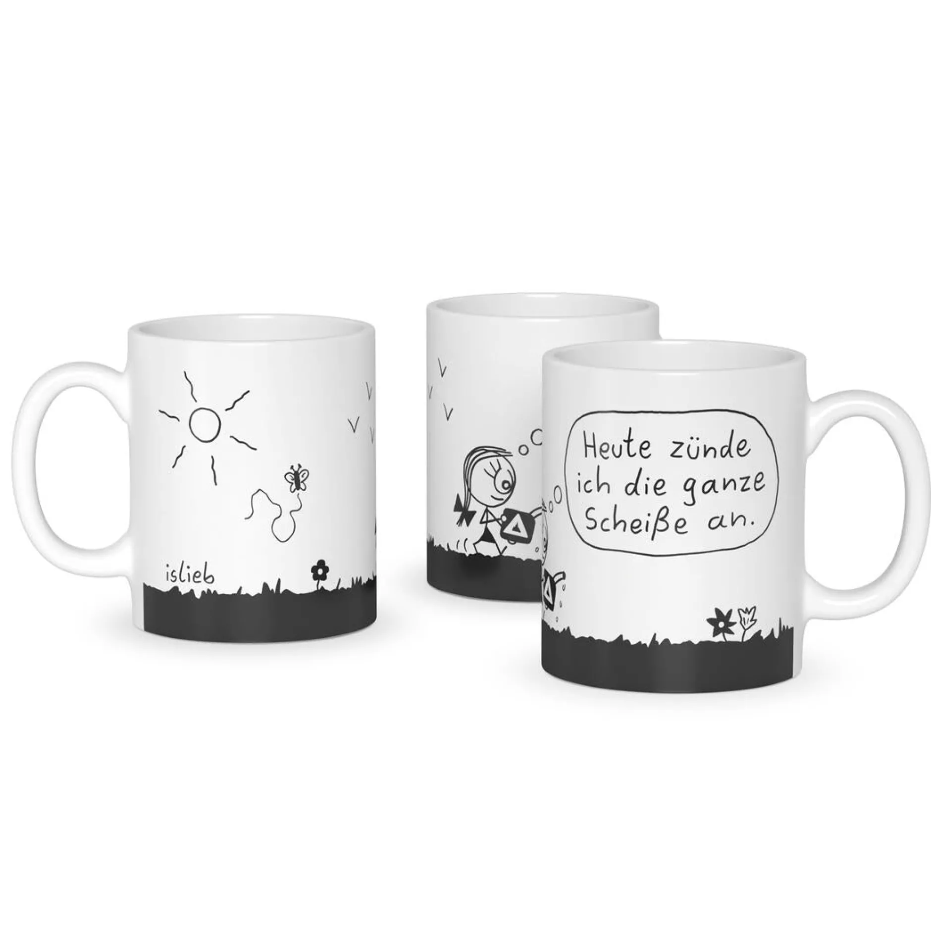 Wenn mal wieder alles doof ist, gibt es einige Möglichkeiten, aus dieser Situation herauszukommen. Entweder, du schaffst es, dir alles doch noch irgendwie schönzureden, oder du lässt deiner zerstörerischen Wut freien Lauf. Am besten wäre es natürlich, du hättest den islieb – Alles anzünden Becher zur Hand und könntest daraus einen Schluck Beruhigungstee oder Motivationskaffee trinken. Der hilft dir sicherlich schnell zu sehen, dass die Sonne noch scheint und die Welt sich irgendwie weiterdreht.