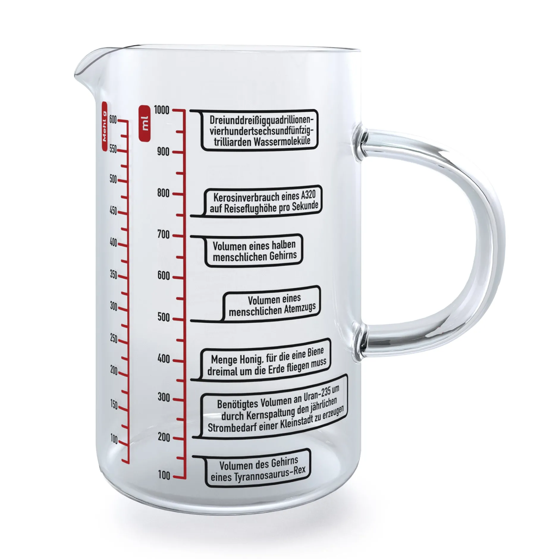 - Messbecher, auf dem 14 verschiedene nerdige Fun Facts markiert sind