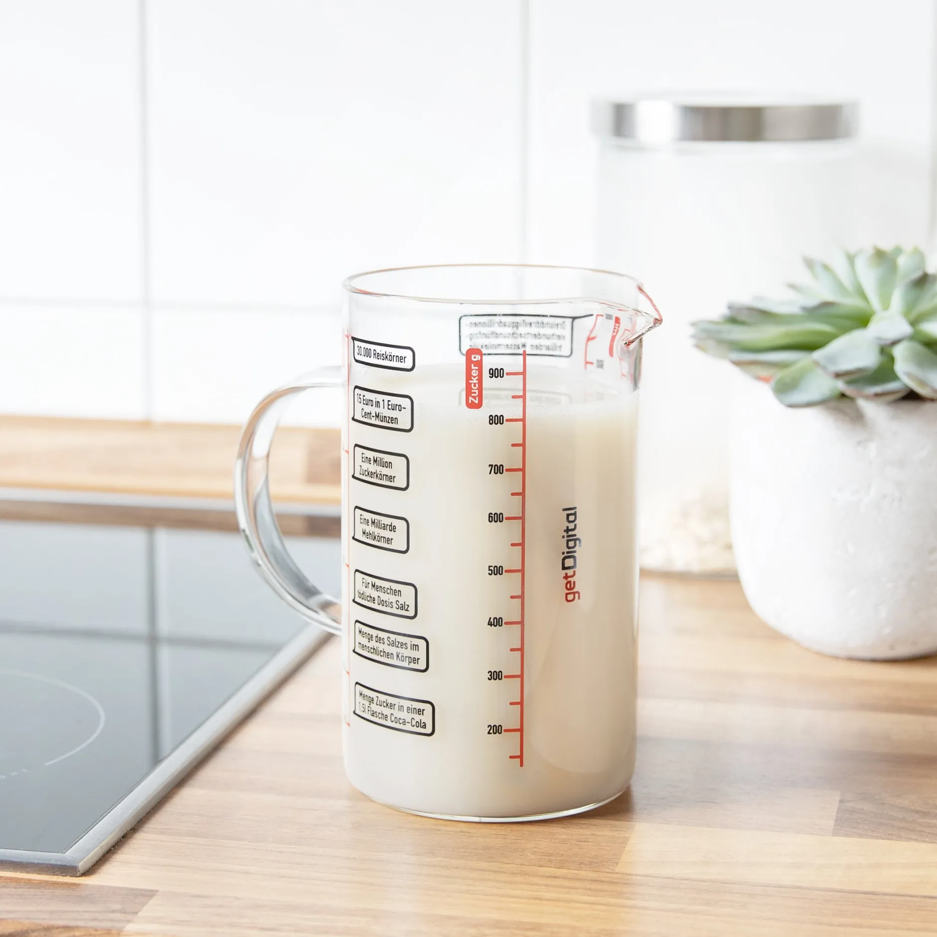 Ohne einen Messbecher wären wir in der Küche aufgeschmissen! Kochen ist zwar ohne genaue Angaben immer irgendwie möglich, beim Backen stoßen wir aber schnell an unsere Grenzen. Und ja, es macht mitunter einen Unterschied, ob du 300 ml Milch oder „ungefähr 300 ml Milch“ in den Teig mischst.