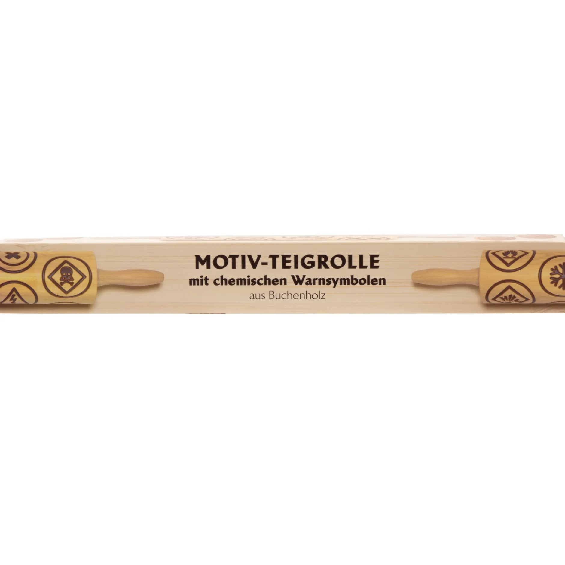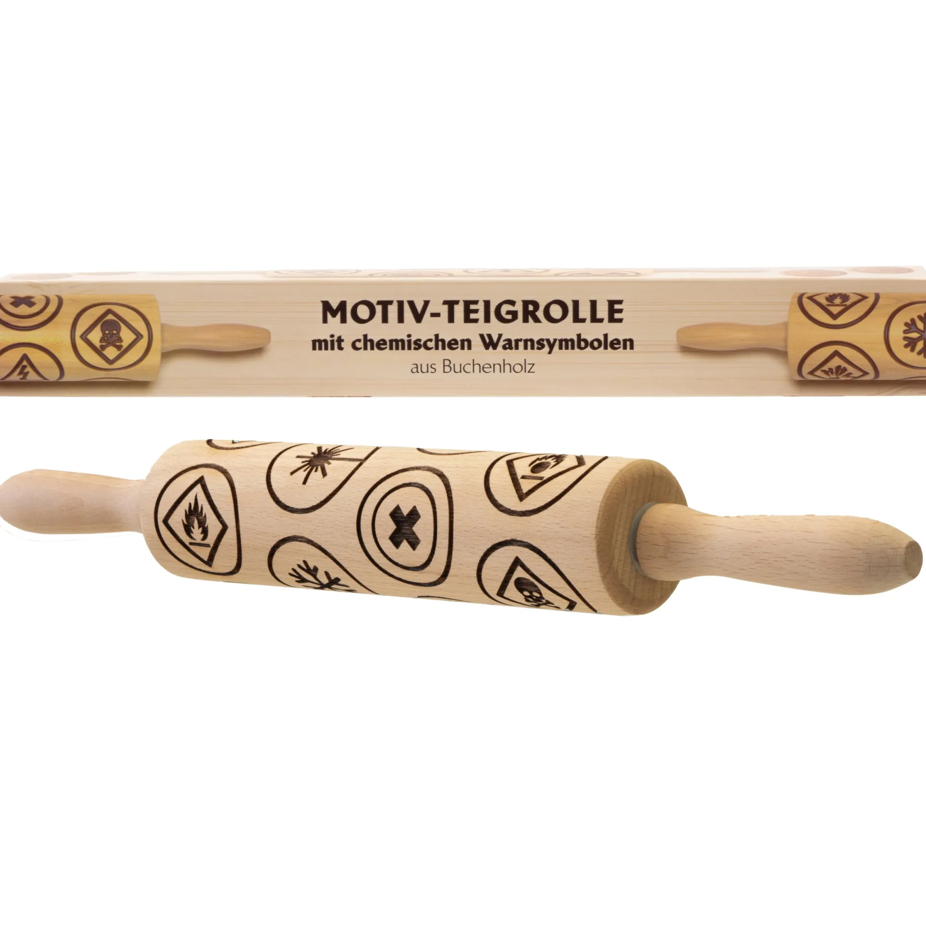 BeschreibungMotiv-Teigrolle mit chemischen Warnsymbolen