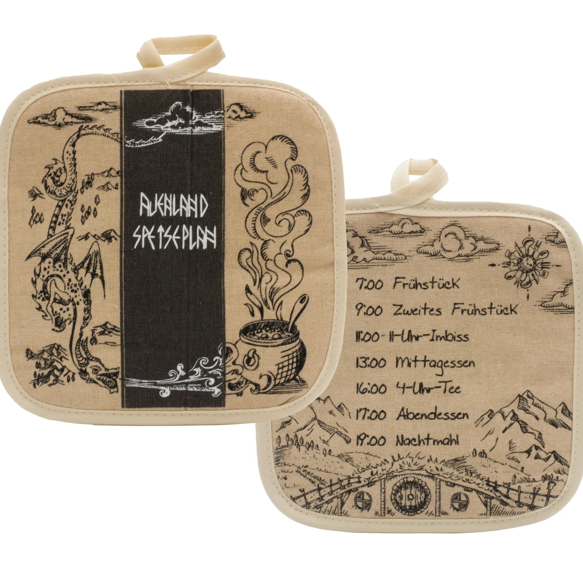 - Set aus 2 Topflappen mit dem Speiseplan der Halblinge aus dem Auenland
