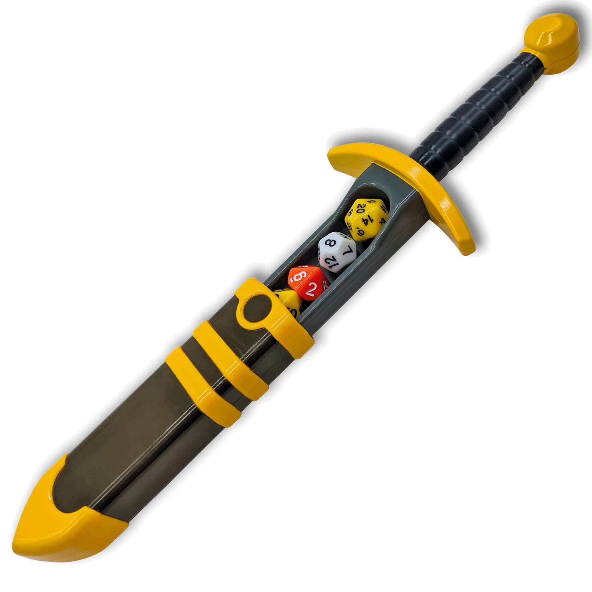 - Kunststoffschwert, das zur Aufbewahrung von Würfeln für Pen & Paper Rollenspiele genutzt werden kann
