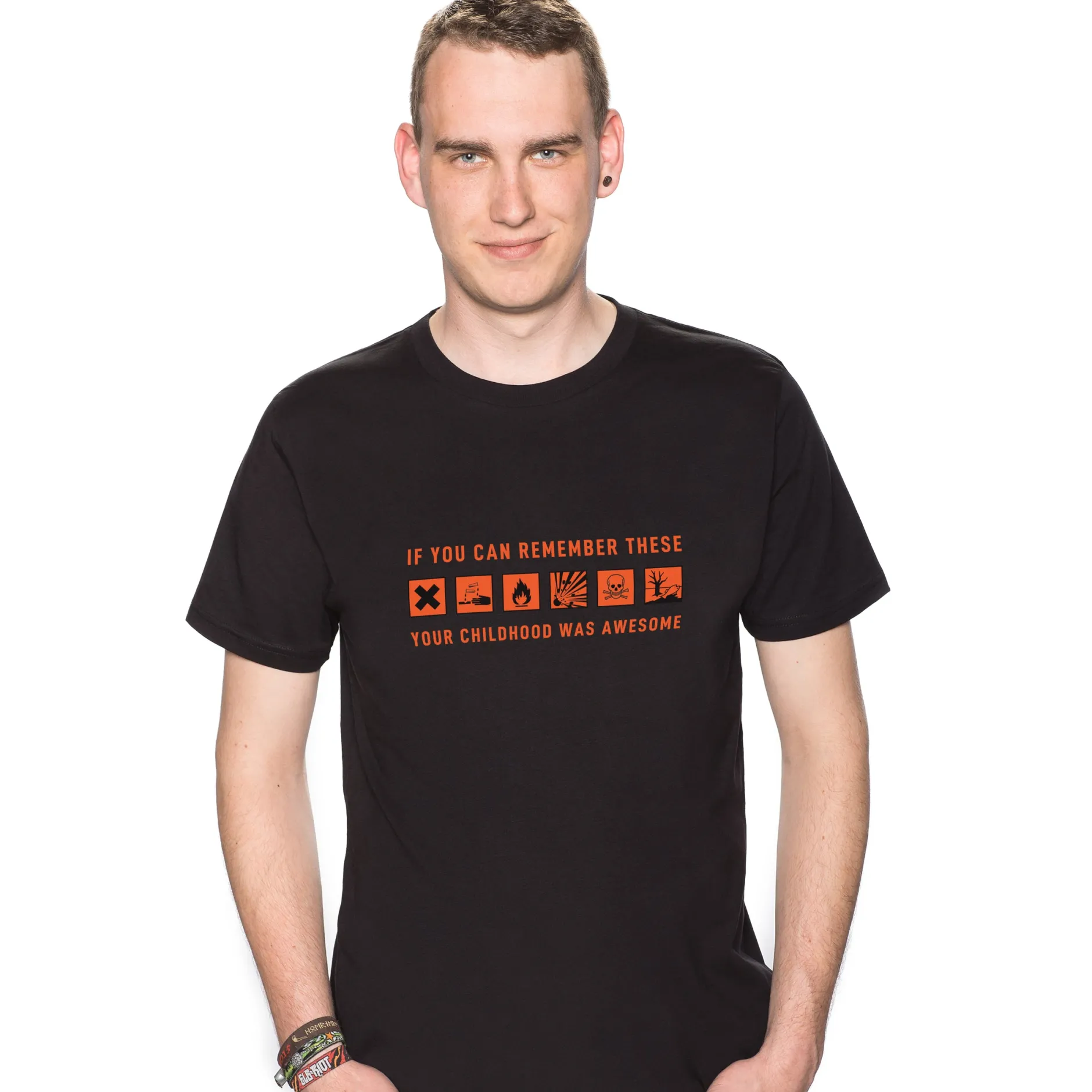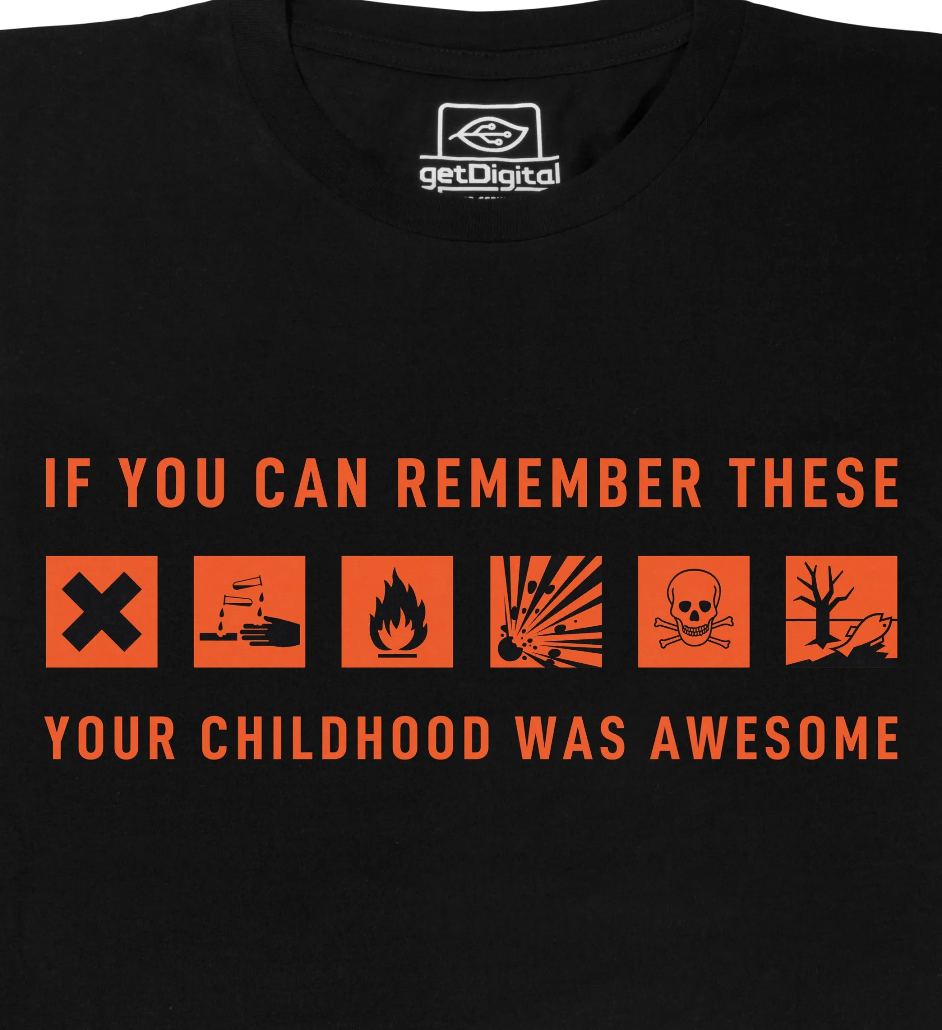 Das „Awesome Childhood“-Shirt weist vollkommen richtig darauf hin, dass ein Chemiebaukasten so gut wie immer für eine großartige Kindheit gesorgt hat. Es hat einfach zu viel Spaß gemacht, einfache Experimente mit Phenolphtalein und Co. durchzuführen. Natürlich wurde auch damals Sicherheit groß geschrieben, Schutzbrille und Kittel durften nie fehlen. Da hat man sich direkt wie ein richtiger Wissenschaftler gefühlt… 🙂