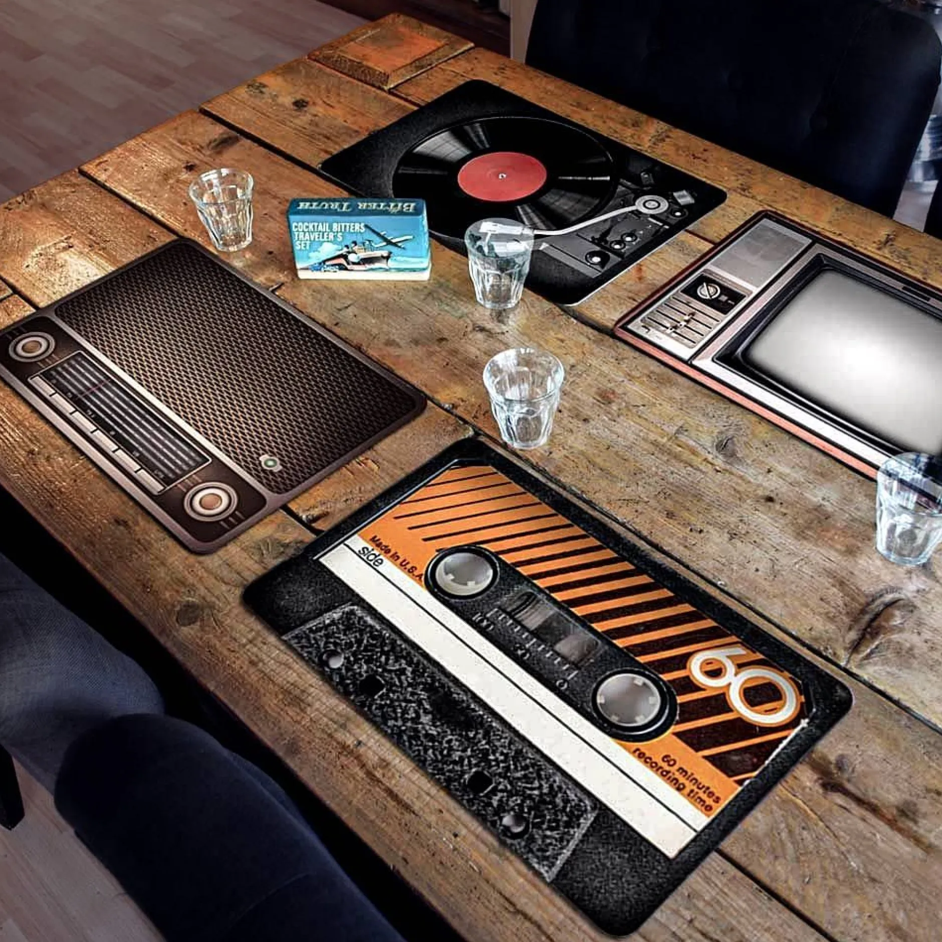 Ideal für Retro-Fans, Vintage-Verliebte oder alle, die ihrem Essbereich ohne viel Aufwand einen stilvollen, verspielten Touch verpassen wollen. Das Set eignet sich sowohl für gemütliche Dinner zu zweit als auch für den nerdigen Spieleabend mit Snacks und Drinks – ganz ohne Angst vor Krümeln auf der Tischplatte.